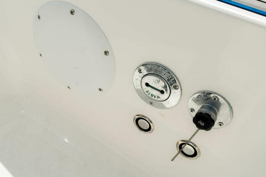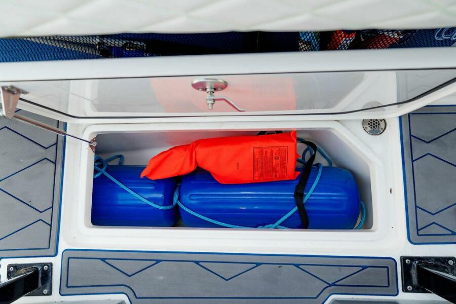 Storage Boxes (5) - Below Deck, with Overboard Diaphragm Discharge Pumps T-Top - Fiberglass, Overhead Storage -TopHiberglass, Ovemead storage T-Top Support Frame - Custom Welded Aluminum