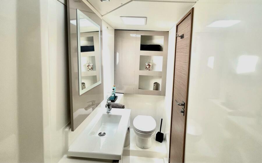 Configured in the sought-after Maestro layout, Kalumburu delivers a spacious and well-designed interior featuring three generous cabins. The dedicated owner’s hull includes a private ensuite, while the guest cabins each enjoy their own bathroom. Island beds in the aft cabins enhance comfort at anchor and underway, creating an ideal environment for extended cruising or family adventures.