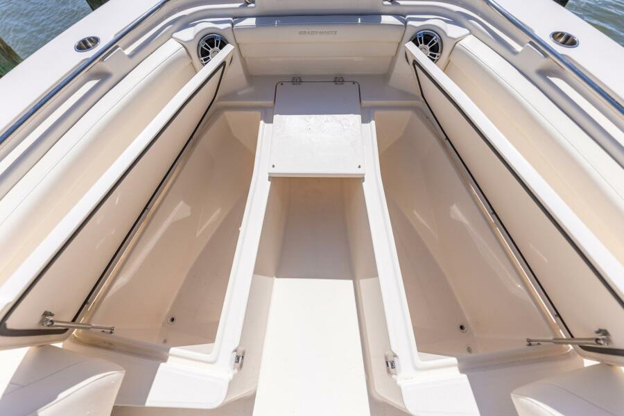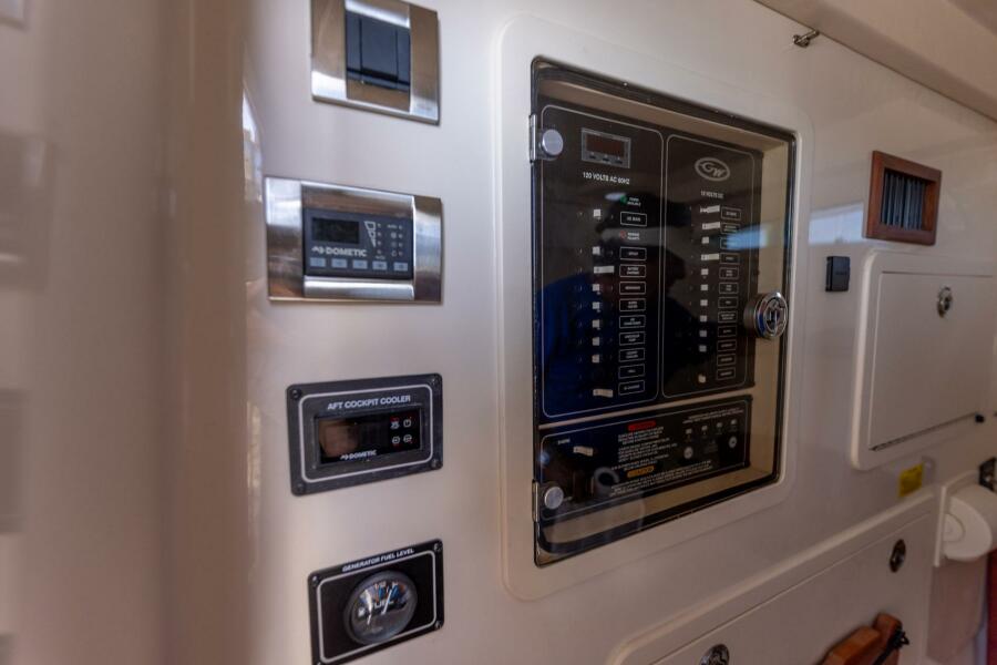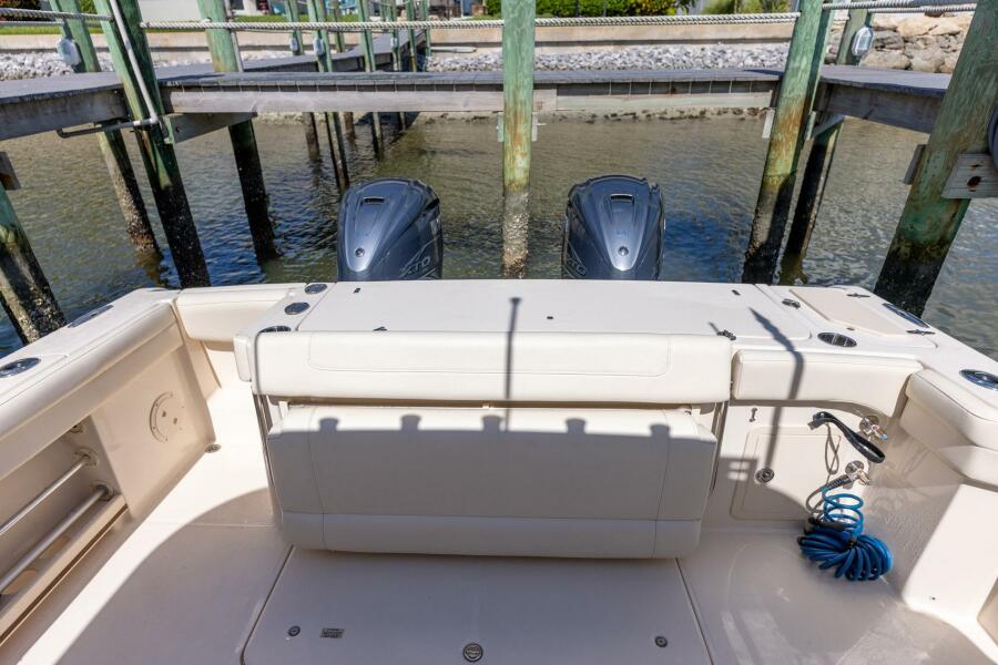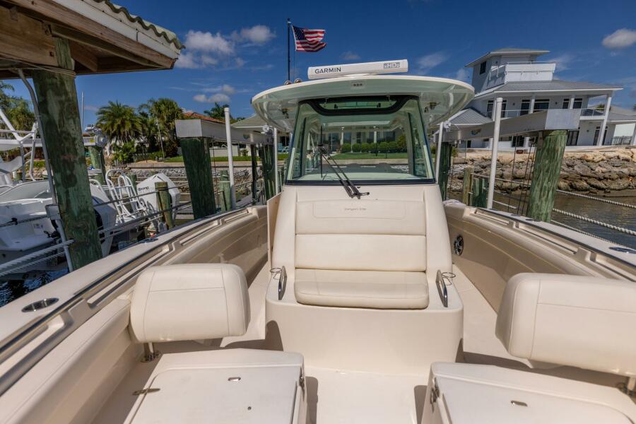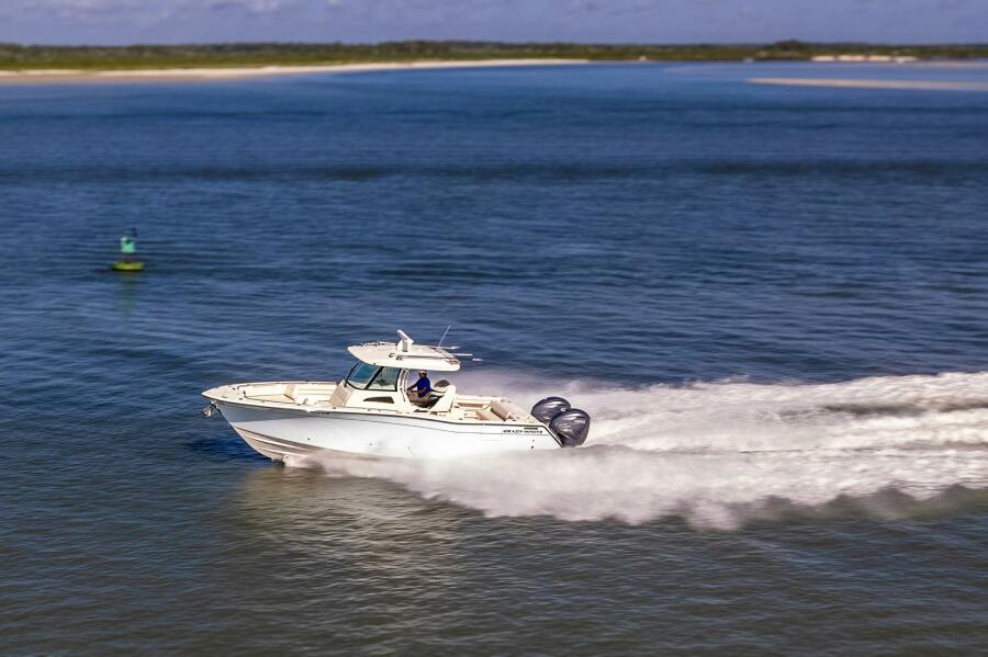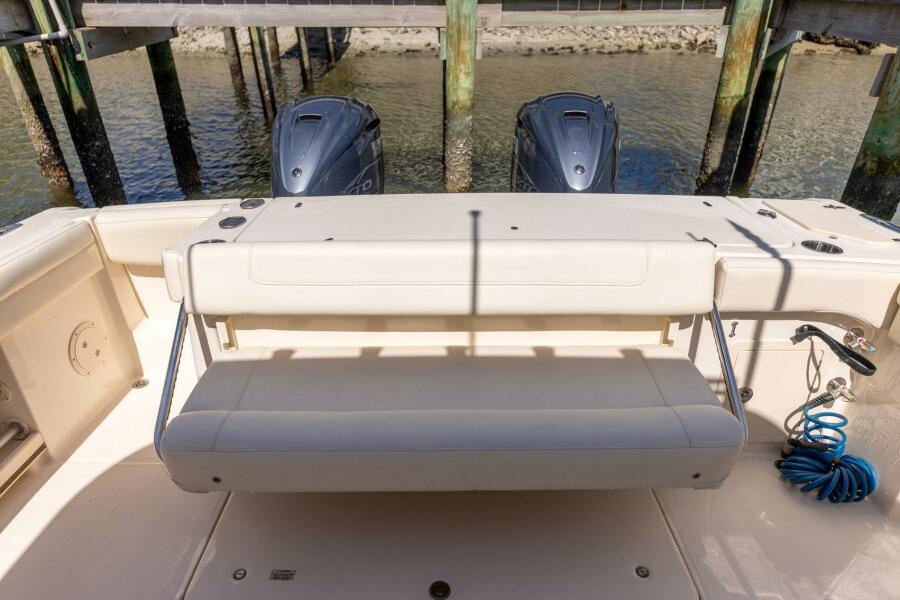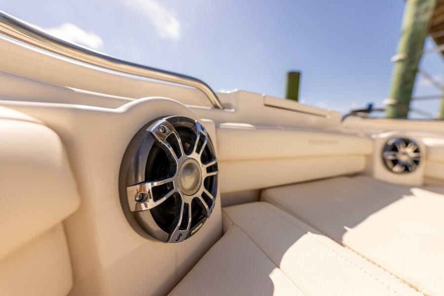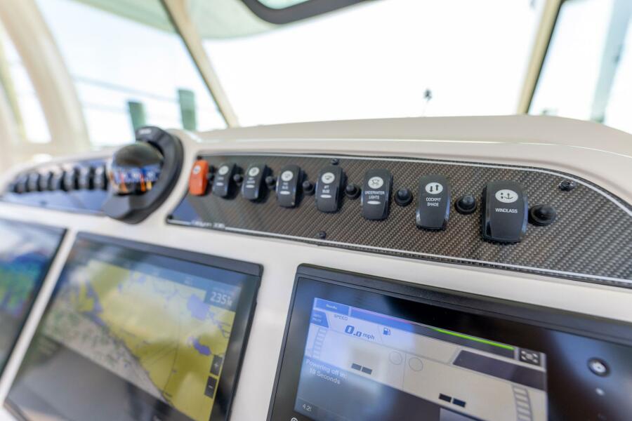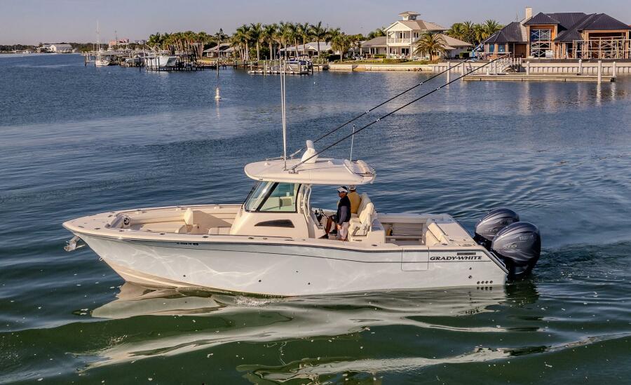 This 336 Canyon has just about every option offered by Grady-White including Sea Keeper 3 Gyro Stabilizer, electrically actuated cockpit sunshade, Yamaha Helm Master, refrigerated fish box, air-conditioning and 5KW diesel generator.
