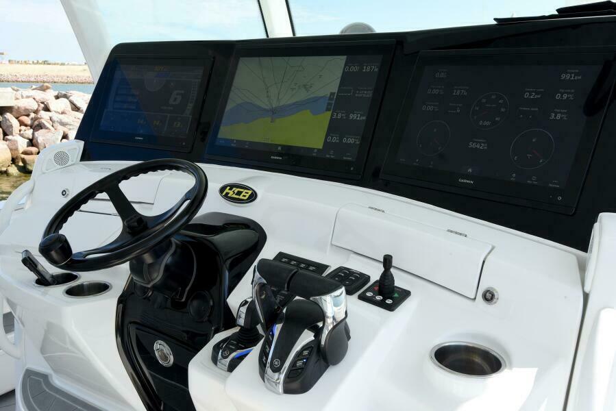 This 2022 53’ HCB Suenos Boat - Ardor is in like new condition, she rides and handles seas like a yacht but is nimble, maneuverable and fast like the mega center-console she is. Quad 425 Yamaha Outboards, push her composite hull easily thru all sea conditions, a quiet diesel generator and Seakeeper 6 keep the boat stable while fishing or at anchor, and the custom tuna tower gives the captain a view from above like no other. Ardor’s single owner checked every box while building her new, all areas of this nearly new boat shine.