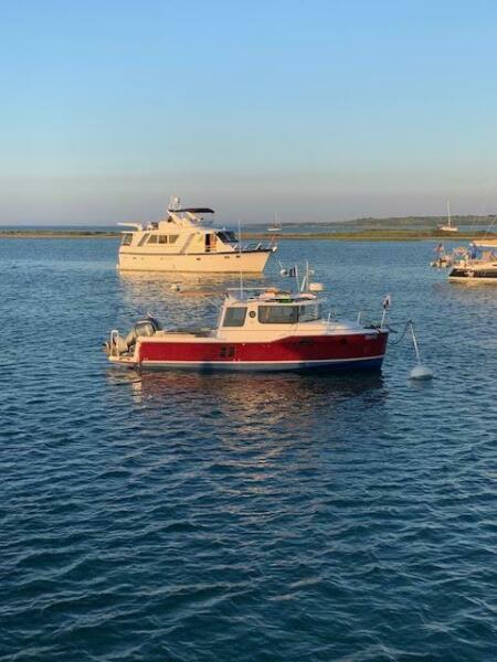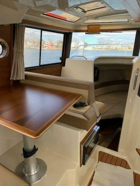 The main salon is light and bright, making it a perfect spot to relax or entertain. The dinette seats four or converts to a bed for two. The forward stateroom is private and comfortable featuring a large bed, opening hatches for airflow, reading lights, and a TV/DVD combo. She features a fully enclosed head equipped with an electric marine toilet, sink and shower. There's even a spacious quarter berth with a removable mattress that can be used to accommodate guests/kids or for expanded storage. An electric/alcohol stove top, refrigerator/freezer combo, microwave, and sink with hot and cold water make food prep easy and fun.