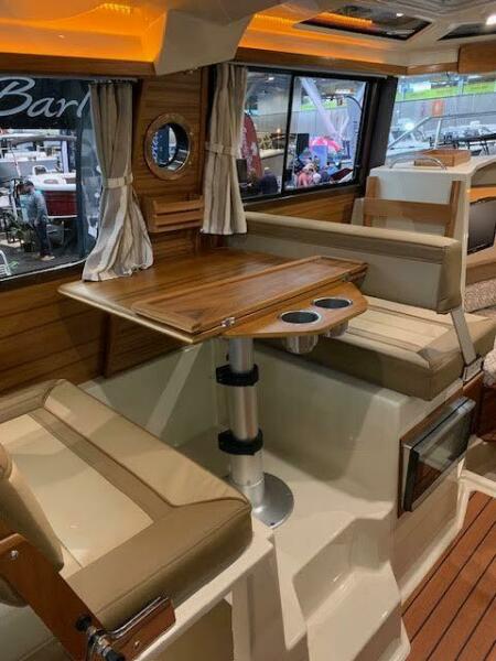 The R25 also features a patented Laminar Flow Interrupter technology providing a smooth, positive cornering performance. Never get lost and enjoy monitoring your speed and performance from the state of the art Garmin XSV chartplotter with GPS, transducer and sonar. The private head, extended swim platform, multiple sleeping ares and full galley give you everything you need to get away from the dock and spend some serious quality time with family and friends.