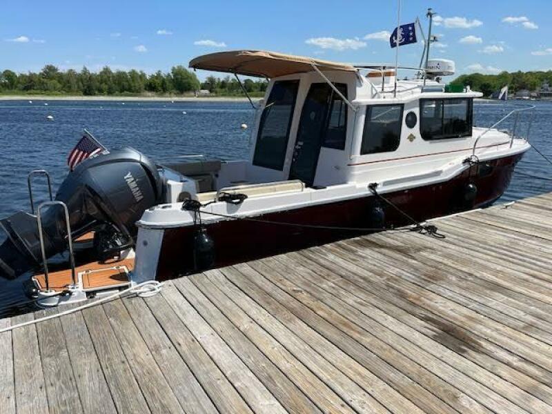 You'll find the Ranger Tugs DNA built into every facet of this R25's thoughtful design. Right away you'll notice one of the most innovative features of the R25, the new clear path swim platform. The extended swim platform wraps around the outboard to present a clear walkway with twenty square feet of non-skid decking, free of traditional engine rigging, which opens a whole new world of fishing, cruising and water sports opportunities. The exciting new design features heavy duty handrails and allows you to safely and easily board a dinghy, net a fish, step to or from a low dock (important for pets) and med-tie without fear of damaging your outboard and having to leap to the dock.