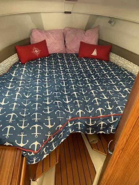 Designed and custom v-berth mattress topper, bedding coverings and sheets from Yacht Bedding Inc.