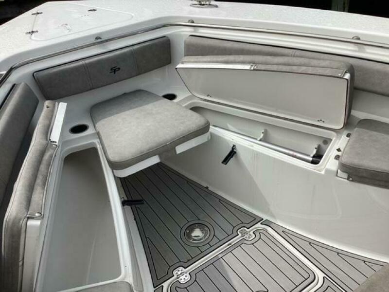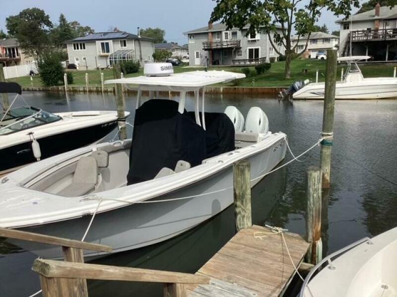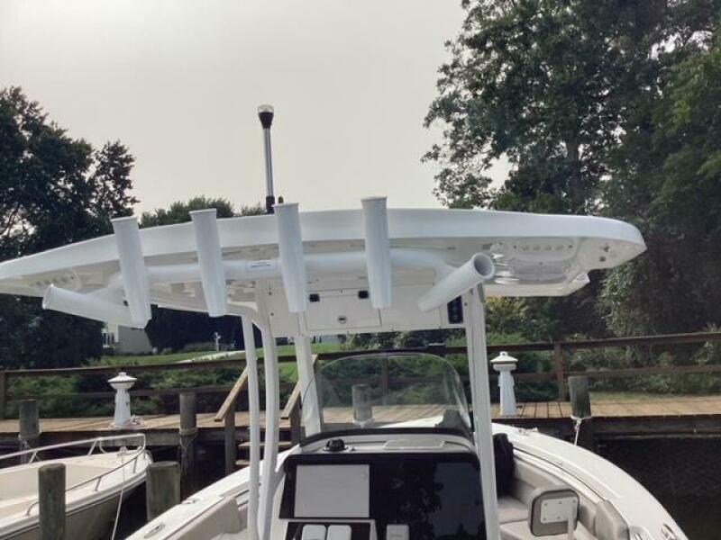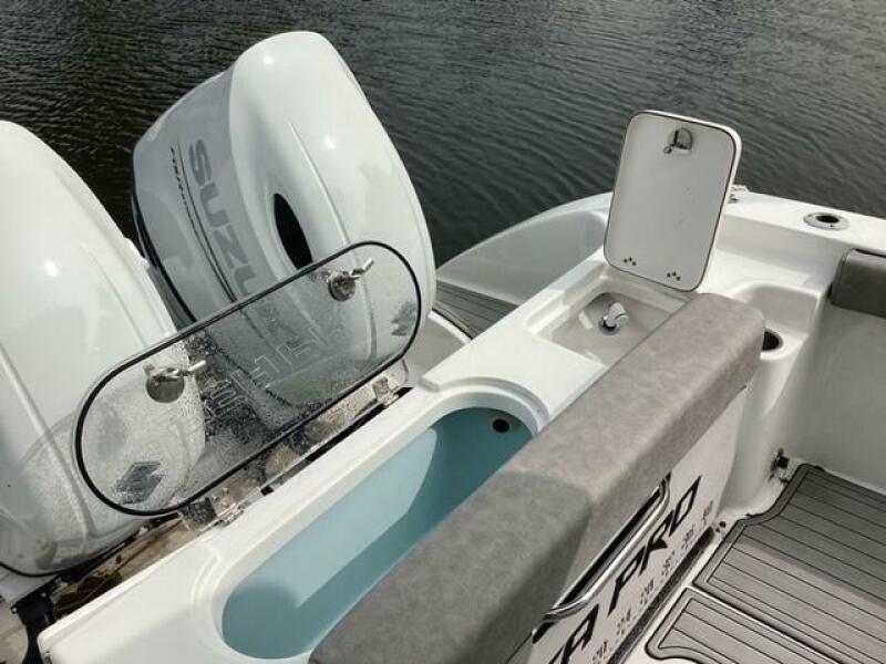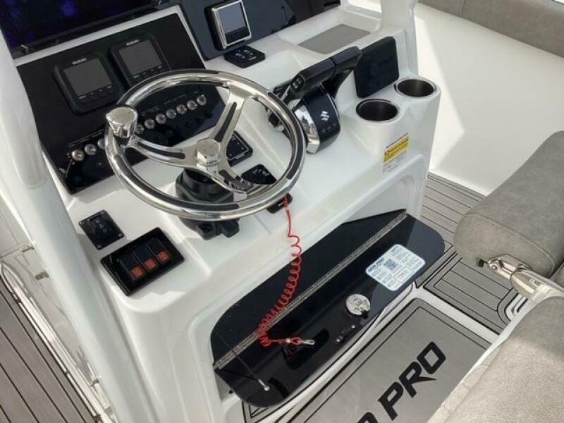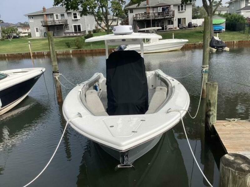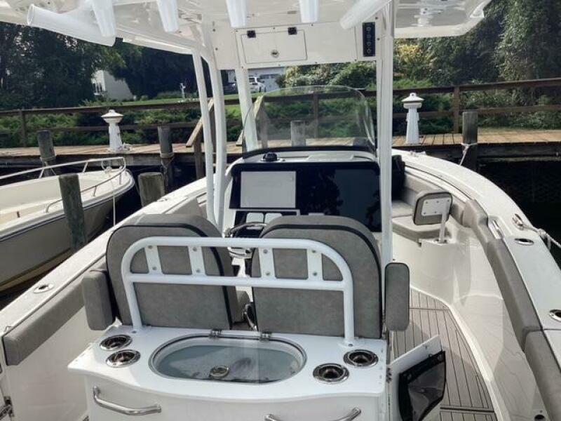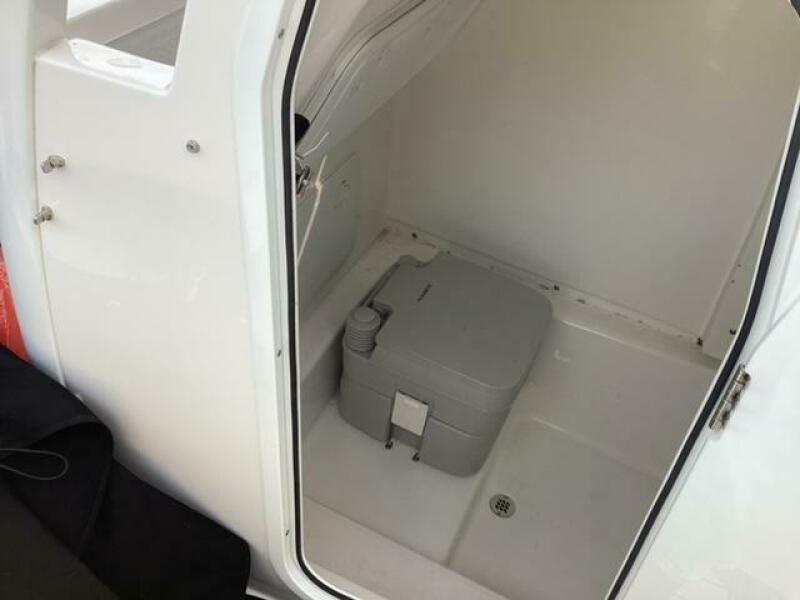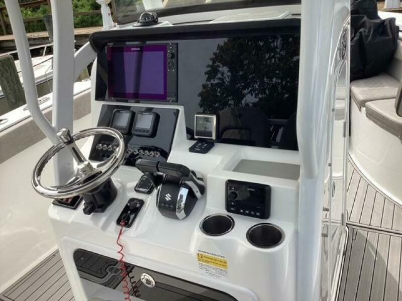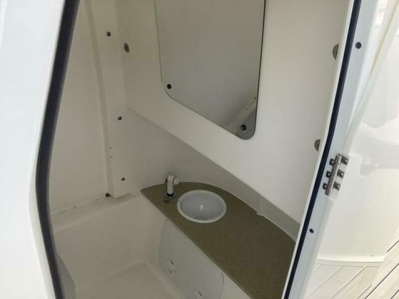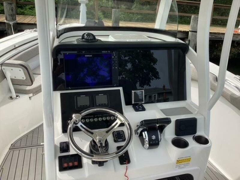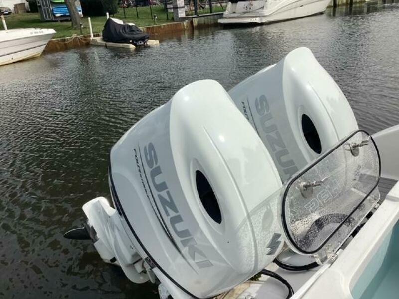 This boat shows so close to new you will think it is. Very nicely equipped with chart plotter, radar and autopilot. She has never been fished she has just been family bot for cruising around. Very low hours on the 200HP Suzuki's with only around 68 hours on these outstanding engines. There is an enclosed head so no need to rush somewhere . These are great riding boats with a 22 degree deadrise on these hulls. There is a hardtop also on this boat. Plenty of seating for everyone. Although equipped for fishing it has never been fished on . He is moving up and is going to miss this boat for sure.