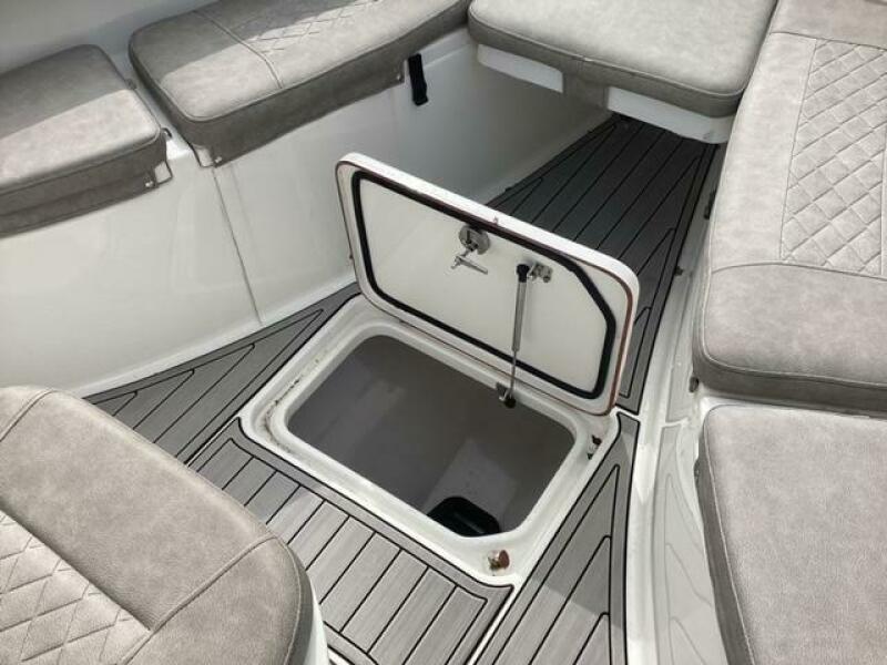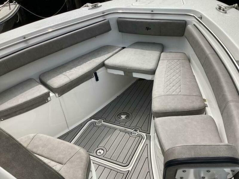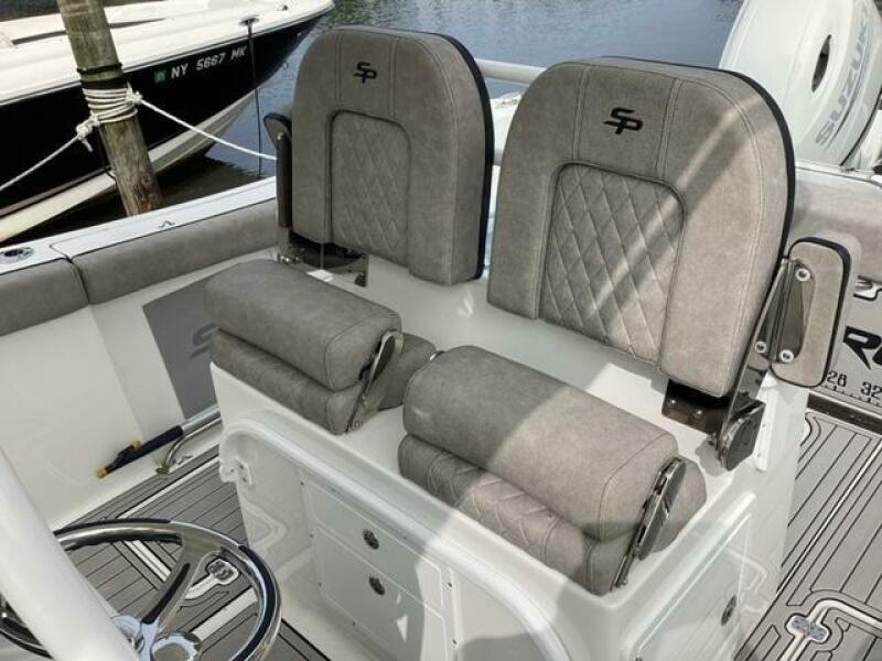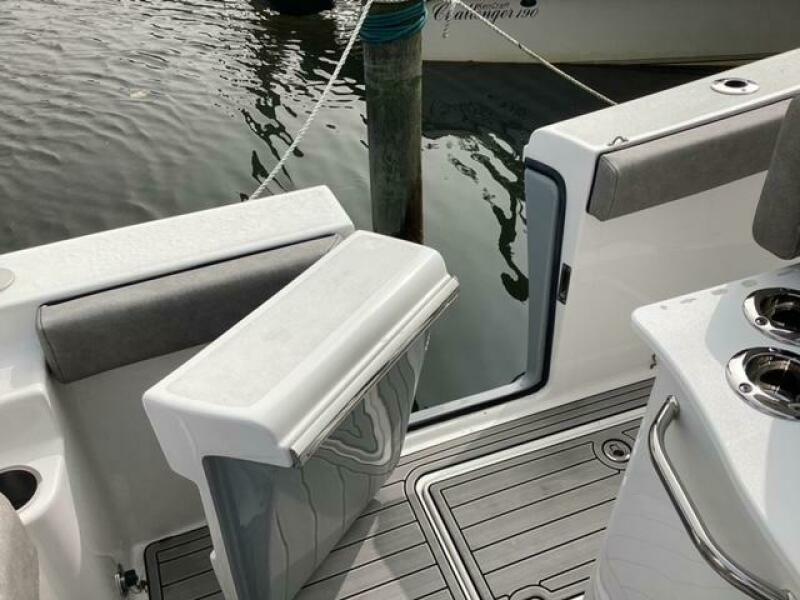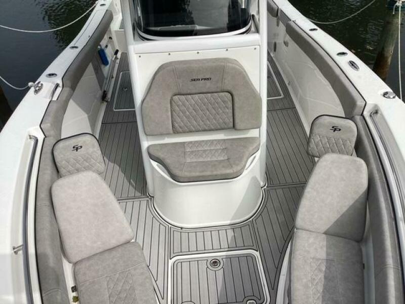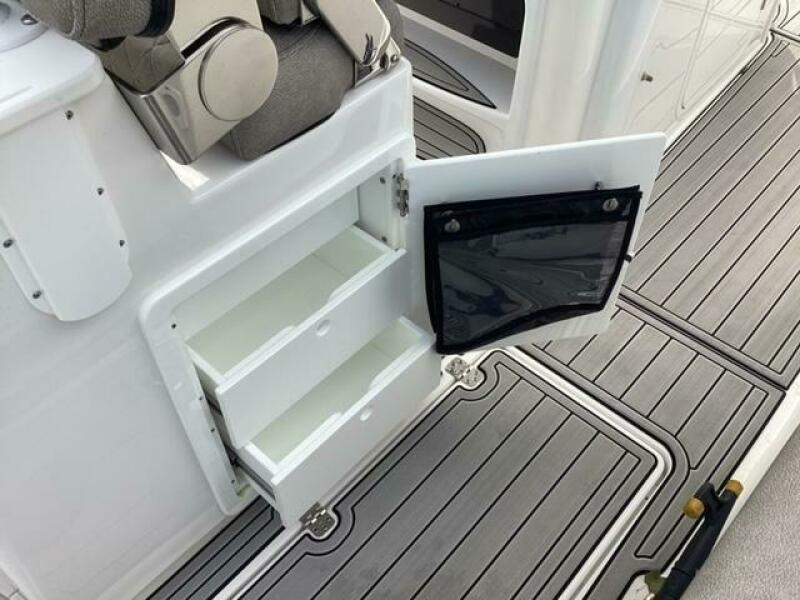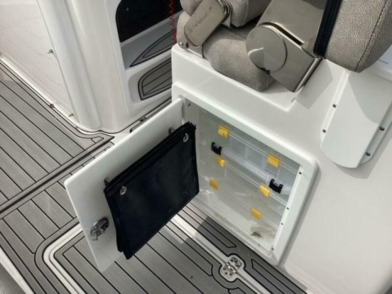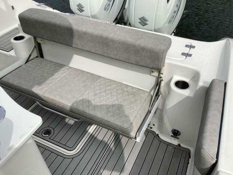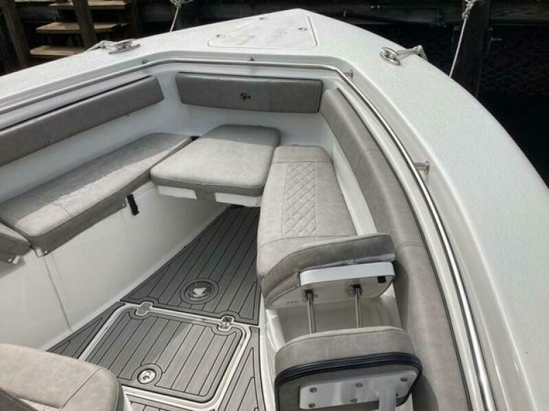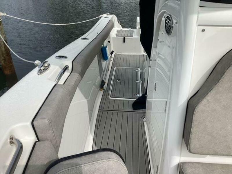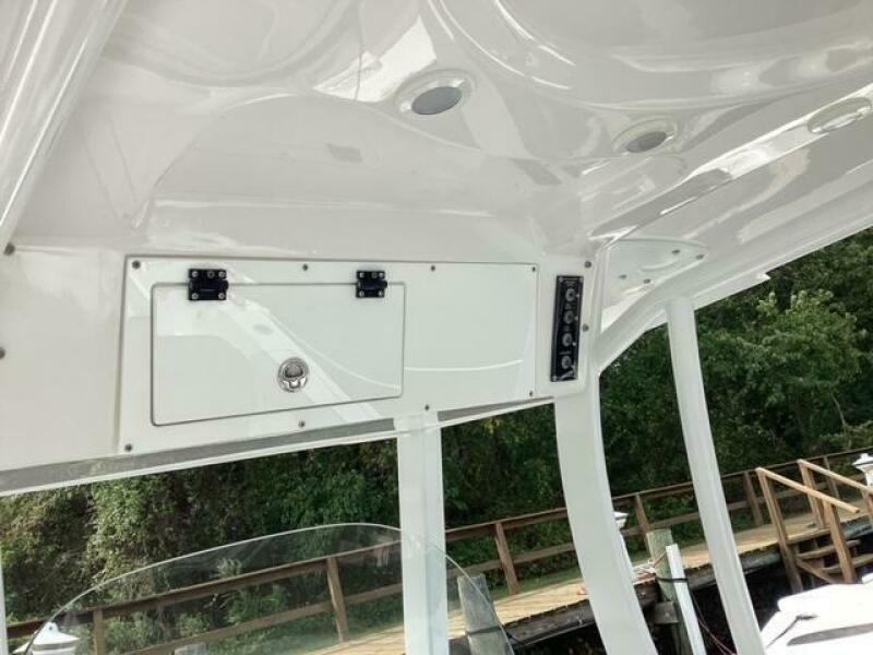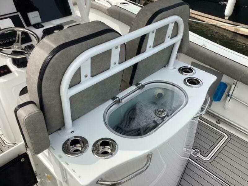 This boat shows so close to new you will think it is. Very nicely equipped with chart plotter, radar and autopilot. She has never been fished she has just been family bot for cruising around. Very low hours on the 200HP Suzuki's with only around 68 hours on these outstanding engines. There is an enclosed head so no need to rush somewhere . These are great riding boats with a 22 degree deadrise on these hulls. There is a hardtop also on this boat. Plenty of seating for everyone. Although equipped for fishing it has never been fished on . He is moving up and is going to miss this boat for sure.