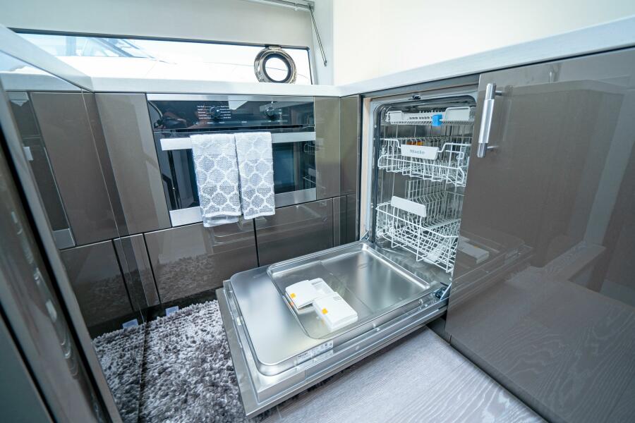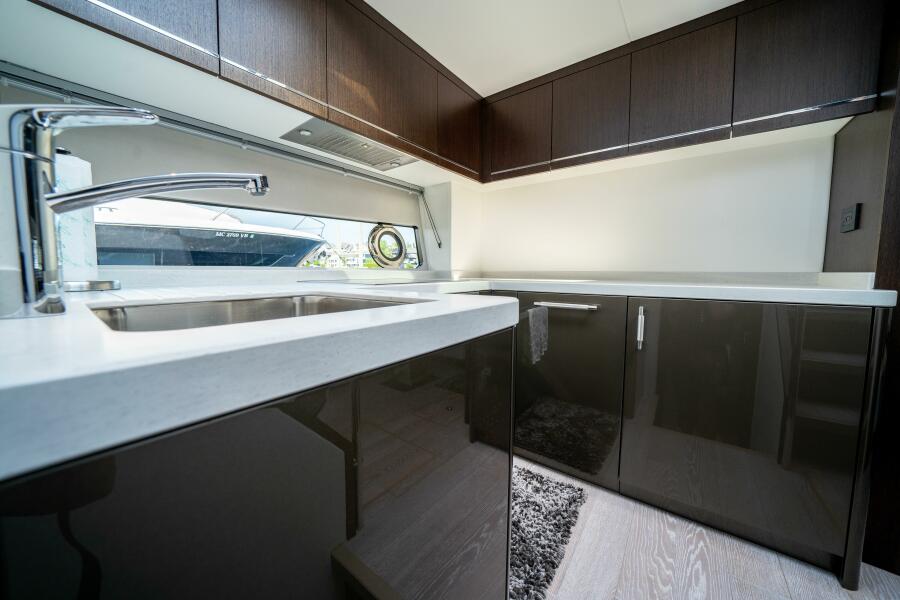 Inside, luxury meets innovation. The open-concept salon and cockpit blend seamlessly, creating a perfect space for entertaining or relaxing in style. High-end materials, refined finishes, and the latest technology define every detail, showcasing Sunseeker’s renowned craftsmanship.