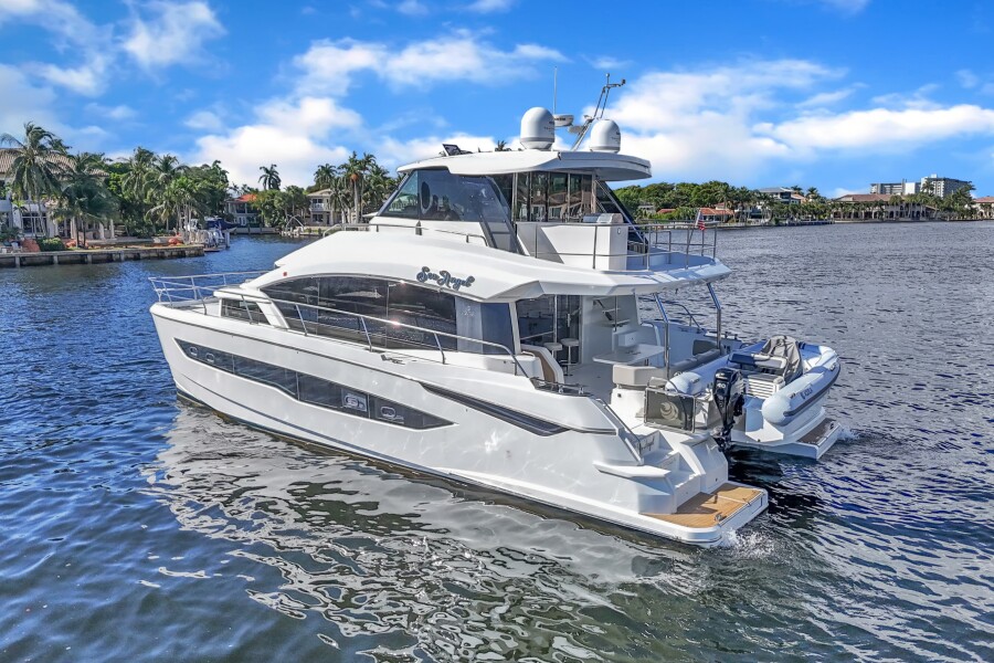 Immaculate 2023 Aquila 54 Yacht featuring just over 600 hours on twin Cummins 550HP engines. This highly optioned 4-cabin, 4-head layout with a galley-up design offers exceptional comfort, luxury, and functionality. The fully enclosed Sky Lounge provides an additional climate-controlled living space with panoramic views—ideal for extended cruising and entertaining.