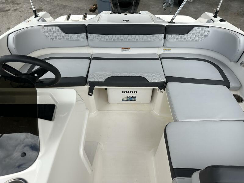 Introducing the 2023 Bayliner Element M17, a stunning deck boat that perfectly blends style and performance. With an overall length of 17 feet, this vessel boasts a sleek modified vee hull made from durable fiberglass, ensuring stability and agility on the water. Powered by a robust Mercury 90 EFI 4-Stroke engine, delivering 75 horsepower, it promises an exhilarating ride for all your aquatic adventures. The Element M17 is designed for versatility, making it ideal for family outings or leisurely cruises. Its thoughtful design includes ample space for relaxation and entertainment, ensuring everyone on board enjoys their time. With only 147 hours of use, this boat is in excellent condition, ready to create new memories. Experience the joy of boating with the Bayliner Element M17, where quality craftsmanship meets modern design.