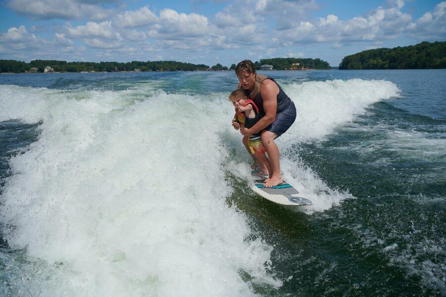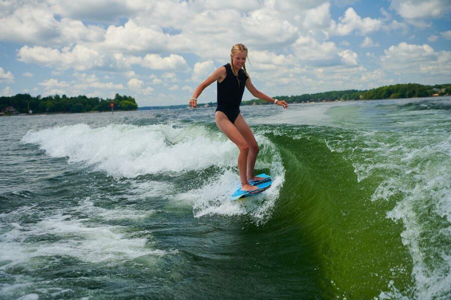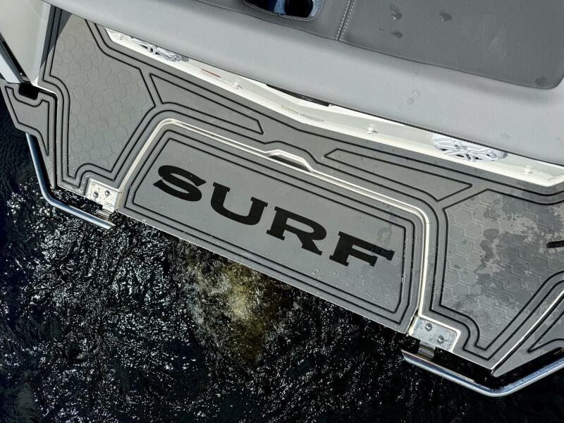 Premium features include: Upgraded 350hp Volvo Penta V8, upgraded JL audio, power tower with board racks and RGB, auto fill/empty ballasts, surf gates, dual Garmin glass cockpit, electric swim step, cruise and speed control, and much more. The Cobalt Surf System delivers the cleanest waves. The system includes 6 hard ballast tanks, a specifically-designed surf hull, surf drive Volvo engine package and the best-in-class SurfGate™ technology that shapes the perfect wave. Spacious seating, high-end finishes, and Cobalt’s legendary ride quality make this the ultimate 24’ surf boat.