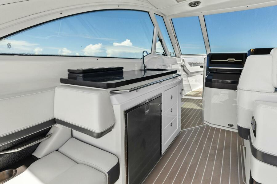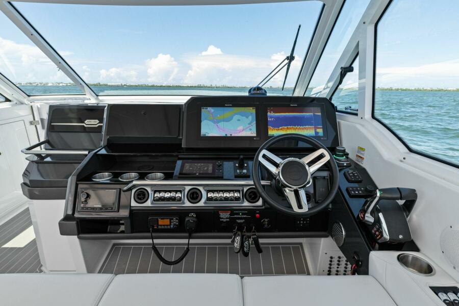With less than 150 hours on triple Mercury 450Rs, this Formula 380 SSC delivers exhilarating performance while maintaining superb stability and control. Captain-maintained, with all services up to date and still under factory warranty through August 2026 will provide additional peace of mind. Made in America, this 2023 Formula 380 Super Sport Crossover is a stunning blend of performance, luxury, and reliability.