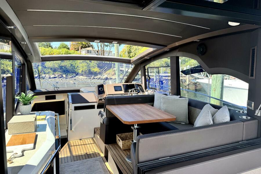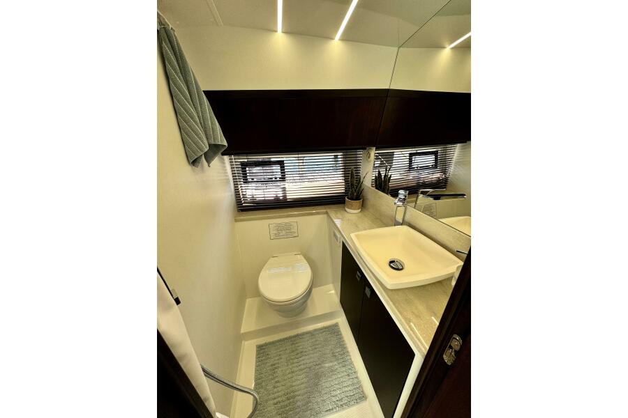Below deck you will find two staterooms with two heads and the galley. The owner’s suite is located midship and occupies the whole width of the yacht allowing for an incredible amount of volume and storage space. With an IPS propulsion package, you can count on excellent fuel efficiency and unmatched maneuverability.