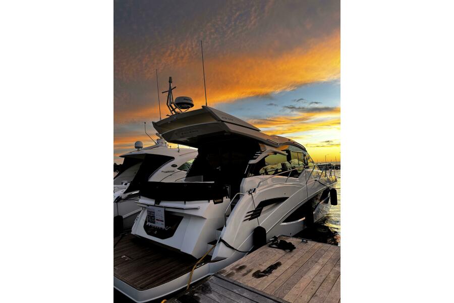 The sleek lines and aggressive profile make it easy to forget the yacht’s true nature where functionality and luxury are standard. Features wide side decks for easy bow access in all weather conditions, spacious aft deck wih window that opens to salon/helm area and is fully loaded with the comfort/luxury packages.