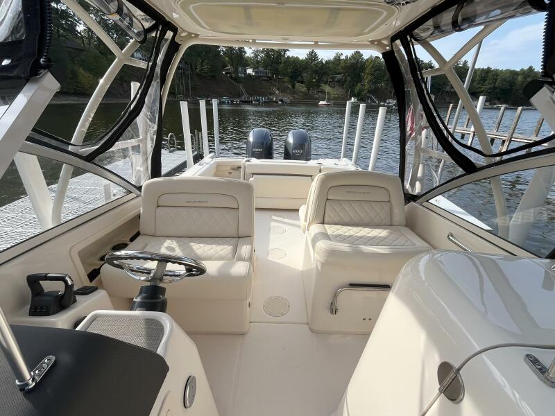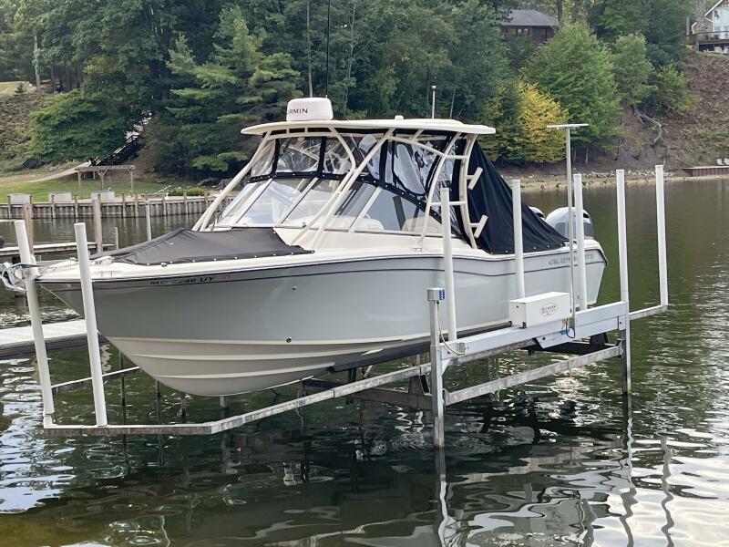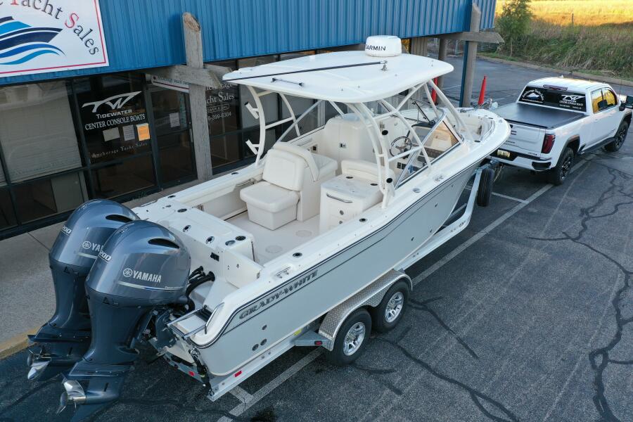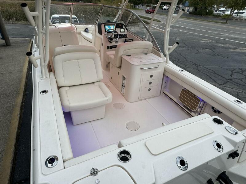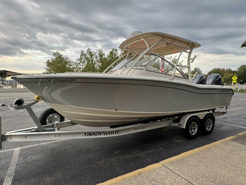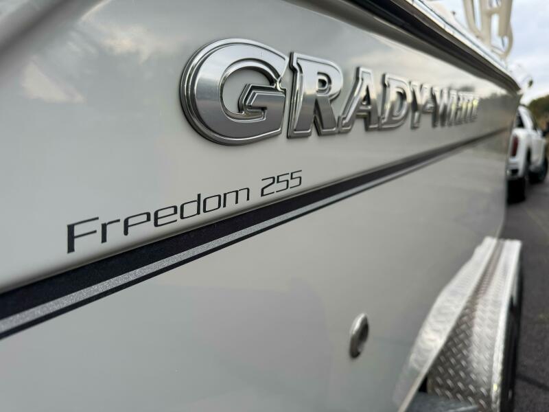 This will be an Amazing Opportunity for someone who is considering a new Grady-White Freedom 255 Dual Console but would like to save a TON of money! This is a one owner, Lift Kept (in the summer), Stored inside heated in the winter, 100% Freshwater boat with all the good stuff on it and it includes a Beautiful Phoenix trailer! This boat only has 45 hours on it and has the optional Yamaha digital 200's with Helm Master EX Joystick with full maneuverability! The option list on this one is long and includes: Helm Bench Seat w/Deluxe Bar & Sink, Deluxe Companion Seat w/Electric Lounge, Windlass, Cockpit Step, Dockside Power w/Battery Charger, Marine Head w/Electric Flush (Never Used), Coastal Fog Gelcoat, Bow Table, Black Front/Side/Aft Curtain, Bow Cover, Cockpit Cover, Garmin Electronics Pkg and more!! There is no bottom paint, just clean factory gel. The Yamaha Outboards are under warranty until 8/28/2026. This model brand new today with these options and trailer will be close to 275k, that's a savings of about 50k! Call or email us for all the details!