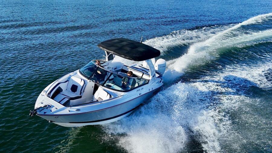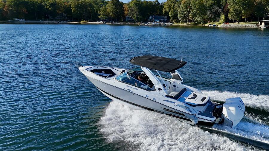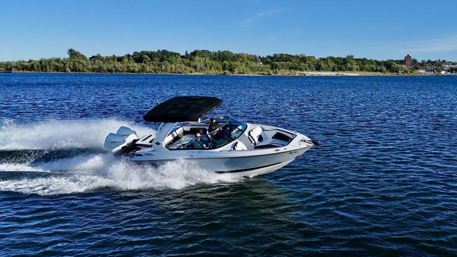 Leave the world in your wake with the 305 Super Sport. With smooth lines, luxurious styling and powerful outboard performance, the 305SS will take you on the adventures of a lifetime. Loaded with a wide array of standard features and amenities such as custom upholstered luxurious seating options, well thought out dedicated storage, a full-size head compartment, and an ergonomically designed digital helm system, you’ll have everything you need to explore endless possibilities and create unforgettable memories.