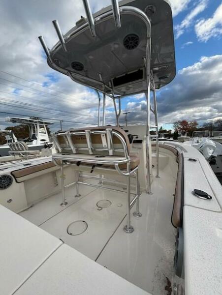 20 HFC combines everything needed for fishing, families and fun. For anglers, the 20 HFC includes under-gunnel rod storage with LED lighting as well as stainless steel rod holders throughout the boat, a 25-gallon stern bait well that easily doubles as dry storage when needed, and blue LED underwater lights. For families and charter captains, the 20 HFC includes plenty of bow and stern seating, which are finessed with comfortable diamond-pleated upholstery. At the stern, the swim platform with a 3-step telescoping ladder makes getting in and out of the water safe and easy.