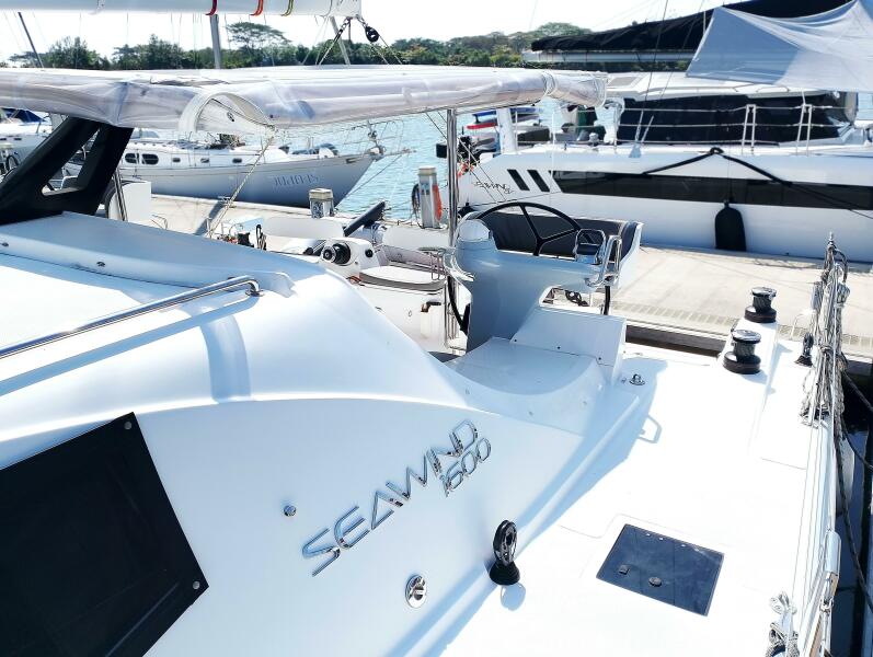 Designed by acclaimed naval architects Reichel Pugh, the Seawind 1600 Passagemaker blends comfort, safety and exceptional sailing performance. Her sleek profile, plumb bows and efficient hull design ensure fast, stable passages, while retractable daggerboards and rudders enable a shallow draft of just 65cm (2’ 1”), ideal for exploring remote, shallow anchorages.
