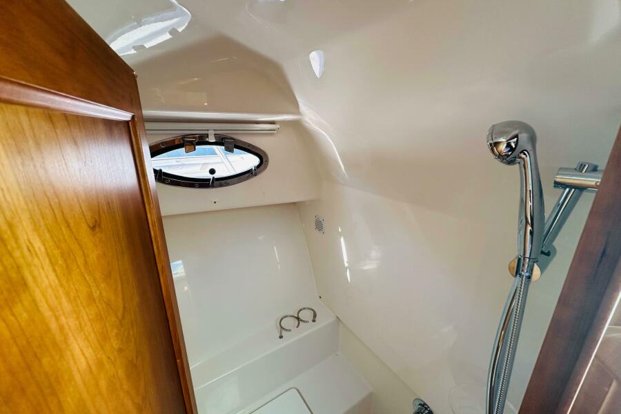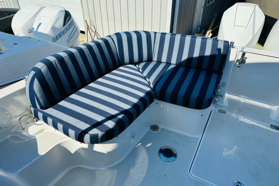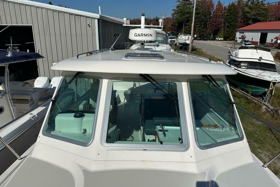 Powered by the twin Mercury V8 Verado 300hp with JPO system (joystick piloting). This lightly owned 34O is nicely equipped with low hours, stored inside winter storage building during off-season, has the Garmin electronics package, a custom helm deck - window canvas package, bow thruster, Flag Blue hull and more.