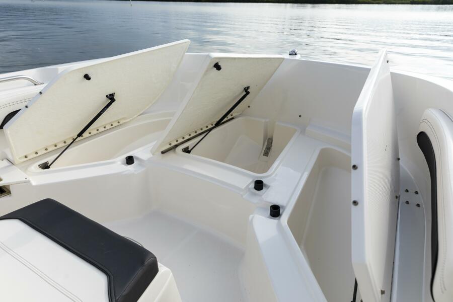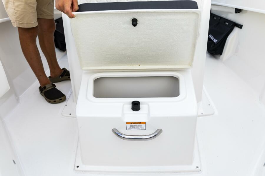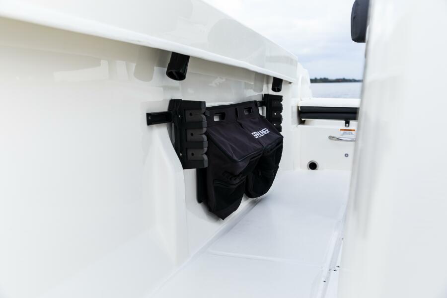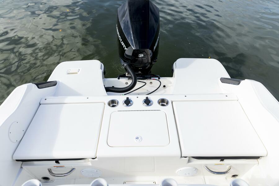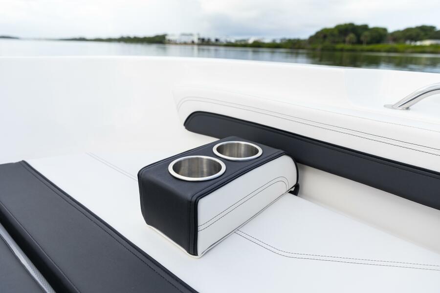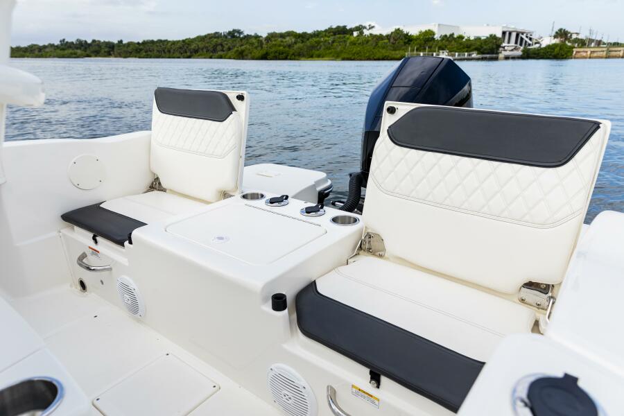 Standard amenities include a self-bailing cockpit, a leaning post with an aerated livewell, insulated fish boxes, and gunwale rod holders. The cockpit is equipped with a waterproof 120-watt AM/FM stereo with Bluetooth capability, and the helm features multi-function gauges with fog-resistant glass lenses. With its combination of fishing features and family-friendly design, the Bayliner Trophy T22CC is an excellent choice for those seeking a well-rounded boating experience.