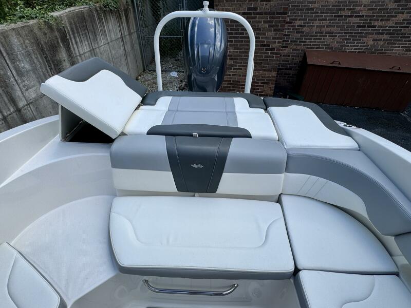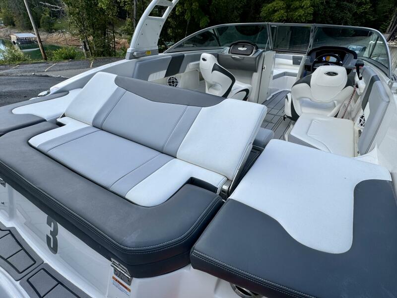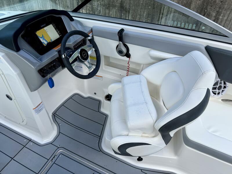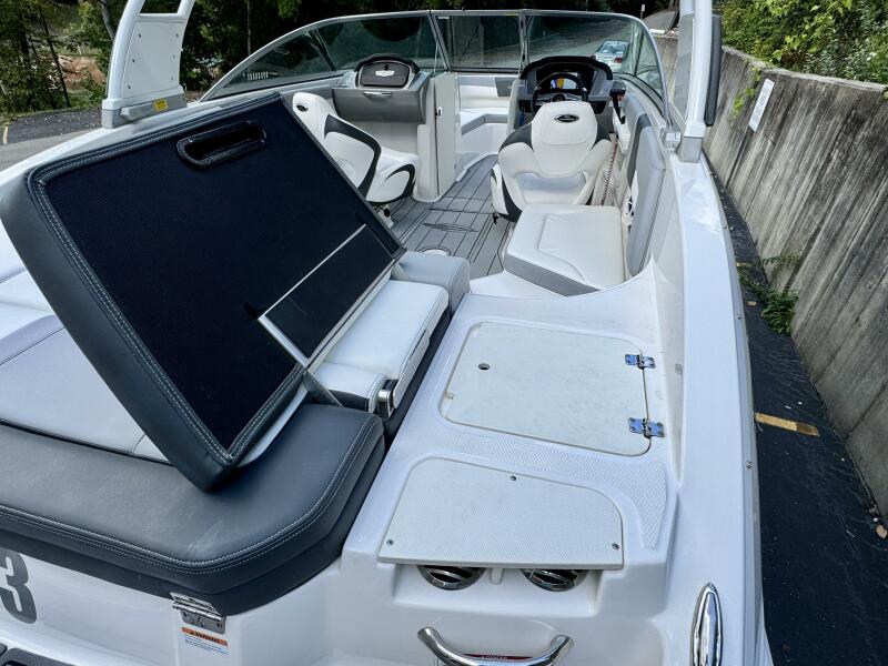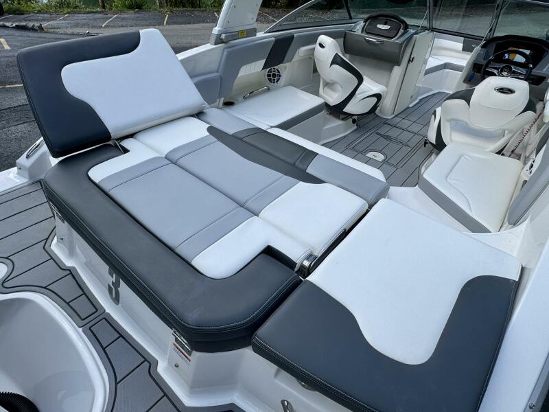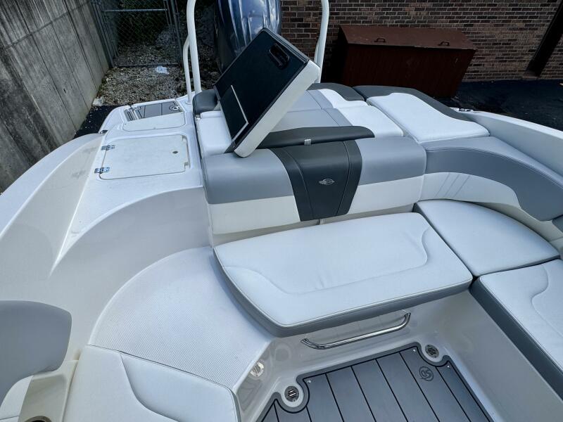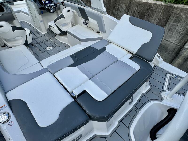 Integrated Swim Platform w/Sea-Dek Flooring, 4-Step Swim Boarding Ladder, Engine-Mount Trim Switch, Convertible SunLounge w/Flip-Up Reclined Seating (Port/Starboard Facing) and Pull-Up Rear Facing Seat Back,