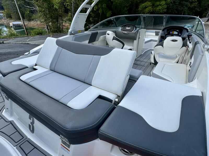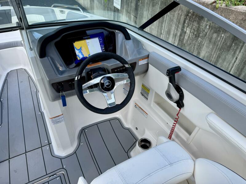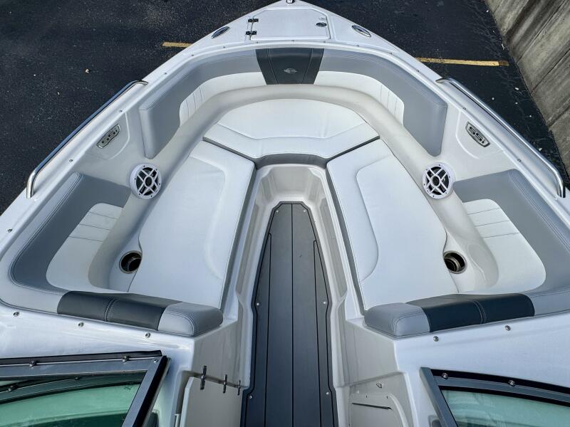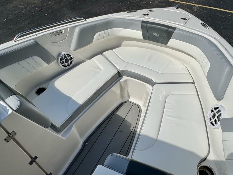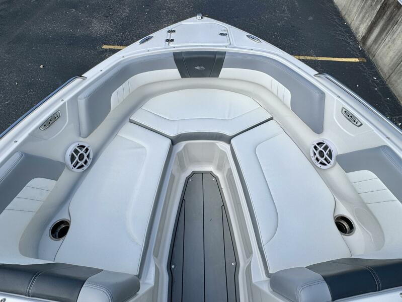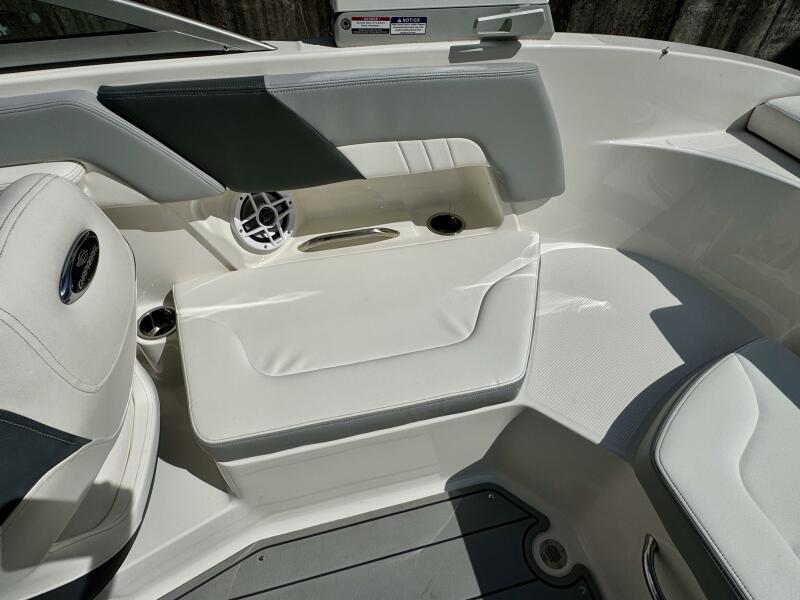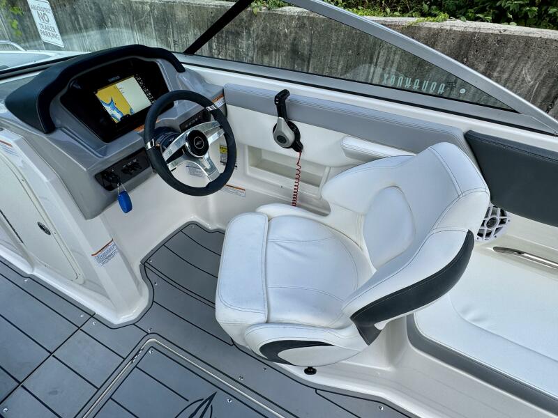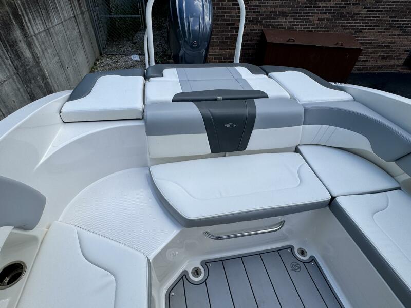 Integrated Swim Platform w/Sea-Dek Flooring, 4-Step Swim Boarding Ladder, Engine-Mount Trim Switch, Convertible SunLounge w/Flip-Up Reclined Seating (Port/Starboard Facing) and Pull-Up Rear Facing Seat Back,