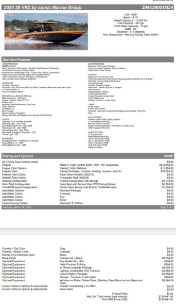 For Sale 2024 Donzi 39 VRZ powered by triple Mercury Racing V10 400R's w only 62 hours and under warranty under 4/2027. Financing and delivery available !