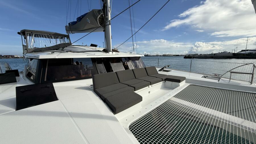 Built by Fountaine Pajot Catamarans and designed by Berret-Racoupeau, Mpola Mpola features mini keels, GRP hull and deck construction, and is presented in near-new condition with low engine hours. Powered by twin Volvo Penta D2-50 (50 Hp, 2024), she delivers reliable performance with excellent fuel efficiency.