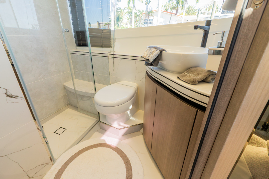 Fusion of innovation and luxury with the breathtaking Beach Mode—folding bulwarks and side glass panels expand the cockpit into a breathtaking open-air lounge.