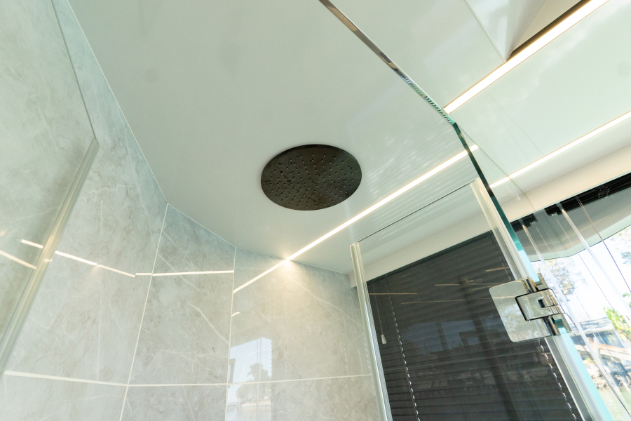 Master head interior shower tiles