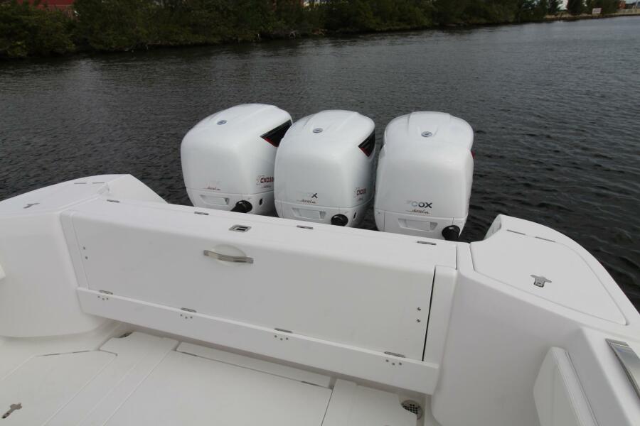 Experience luxury and performance with the 2024 Intrepid Nomad 375 SE featuring triple Cox 300 diesel outboards. This vessel boasts exceptional fuel efficiency and an impressive range, making it an ideal choice for those seeking both adventure and economy on the water.