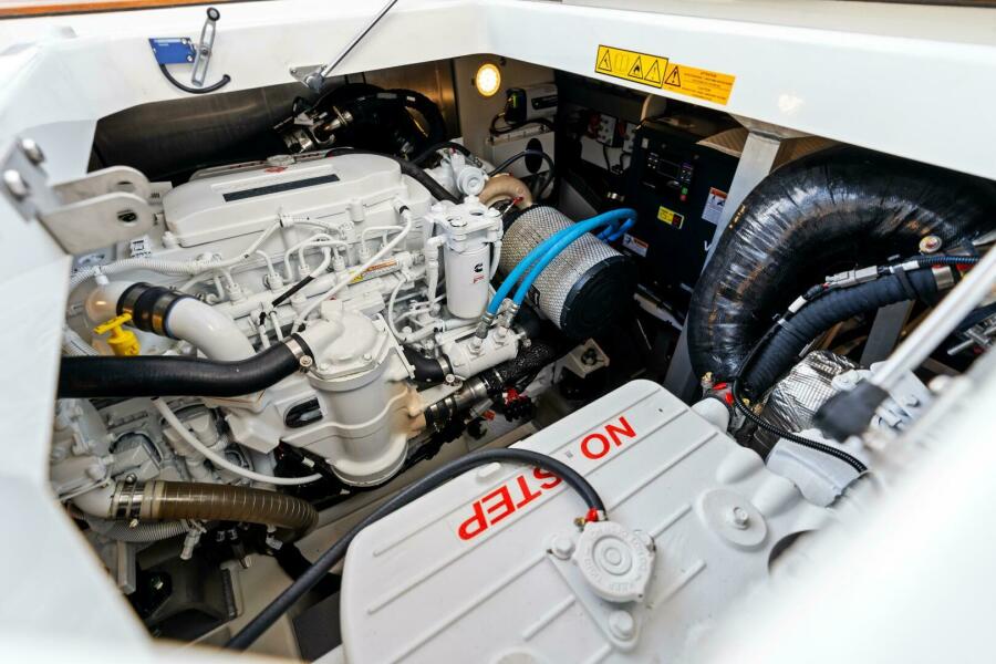 Powered by twin Cummins QSB 6.7L 425HP diesels with straight shaft propulsion (no pods), the 420 delivers smooth, confident handling and the reliability owners love. Inside and out, she showcases Prestige’s signature contemporary styling with thoughtful spaces for entertaining, relaxing, and enjoying time on the water with family and friends.
