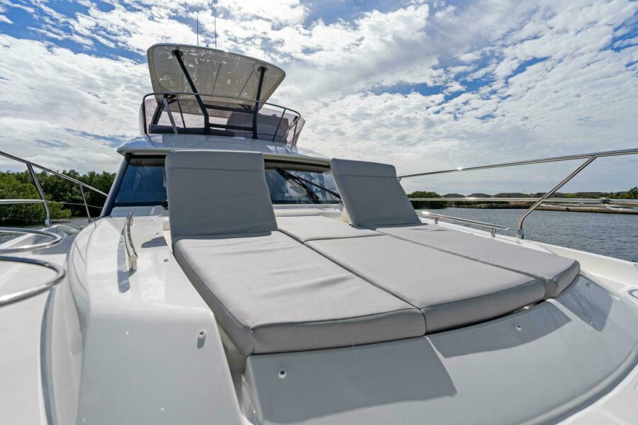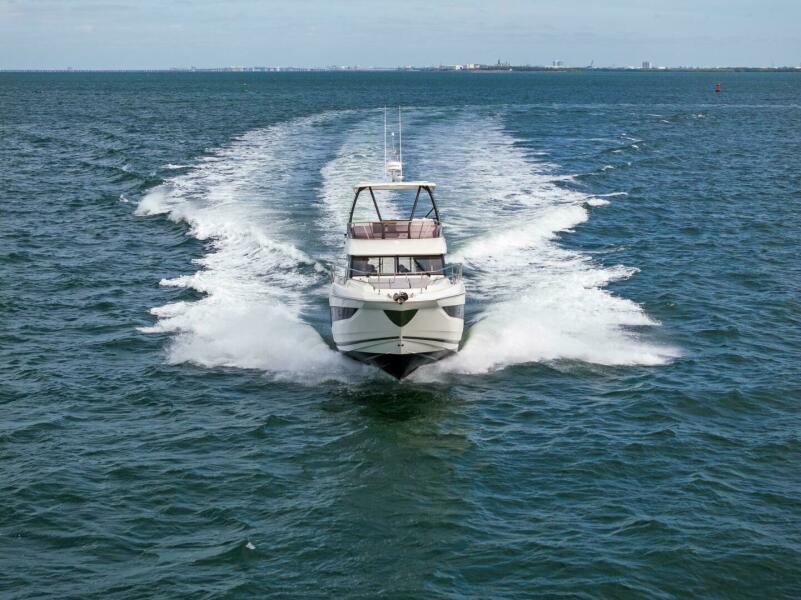 This boat is exceptionally well equipped for the North American market and loaded with desirable upgrades including a fiberglass hardtop, tropical air conditioning, hydraulic swim platform, and upgraded Garmin displays at the lower helm. From her sleek profile to her spacious flybridge and well-appointed interior, this 420 Flybridge checks all the boxes for a buyer looking for a turn-key, luxury flybridge yacht.