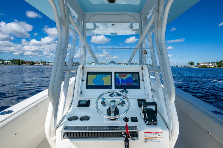 Its equipped with a perfect combination of electronics including Dual garmin 8616's, open array radar, and autopilot. A JL Audio stereo with all JL Audio speakers and amps ensure you will hear your favorite songs clearly no matter what speed you are running.