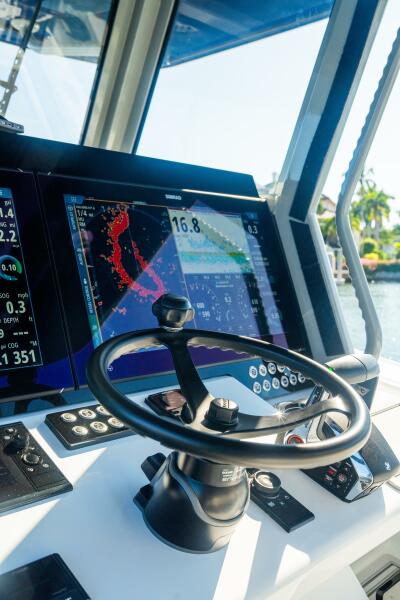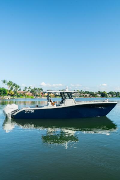 Introducing the stunning 2025 Costa Custom Boats 34 Power Catamaran, a remarkable vessel designed for both performance and comfort. With an overall length of 34.83 feet, this catamaran boasts a sleek fiberglass hull that ensures stability and efficiency on the water. Equipped with four powerful Mercury 300 V8 outboard engines, each delivering 300 horsepower, this boat promises exhilarating speed and reliability, with only 118 hours of use. The electric windlass enhances convenience, making anchoring a breeze. This catamaran is perfect for adventurous outings, offering ample space for relaxation and entertainment. Its contemporary design and robust construction make it an ideal choice for those seeking both luxury and functionality on the water. Experience the thrill of cruising in style with the Costa Custom Boats 34, where every journey becomes an unforgettable adventure.