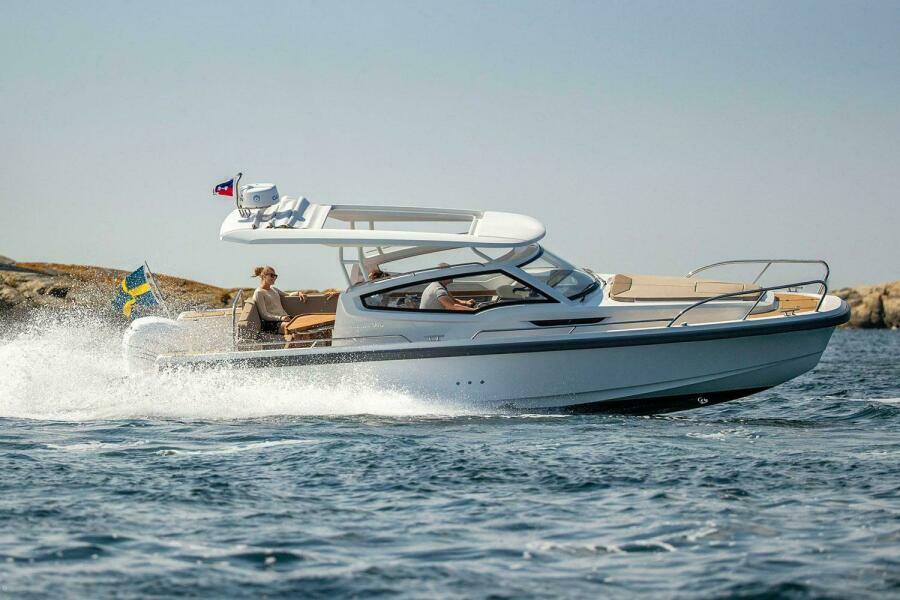 Among the design elements that will be easily recognized are the interior layout, which has many similarities to the 26 Epoca and 32 Ballista, the broad fore deck for extra safety and ease of boarding and disembarking, a feature of the Max II, the design of the side windows from the 22 Spectra, the design and function of the window frame with integrated canvas hood cover from the 305 Drophead, the air-lubricated stepped hull introduced to the Nimbus family with the R-series in 2000, and much more.