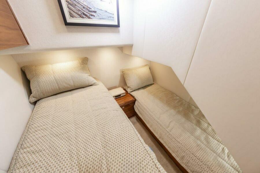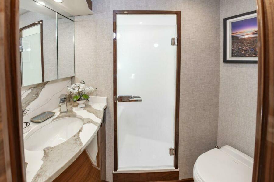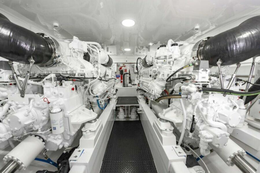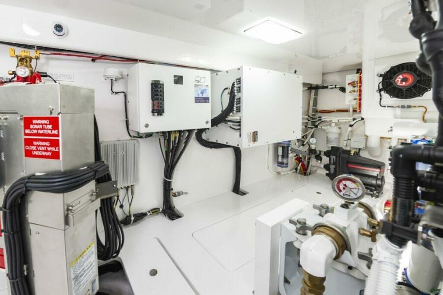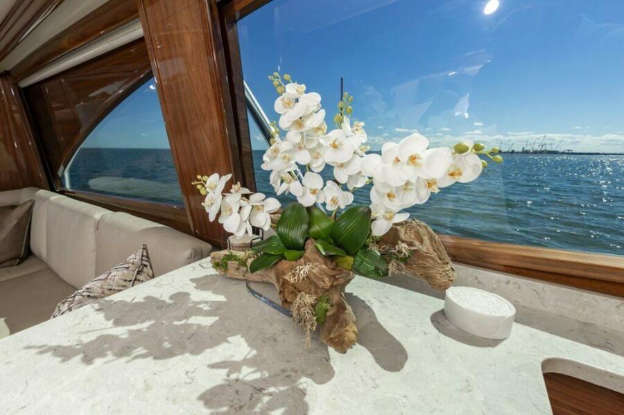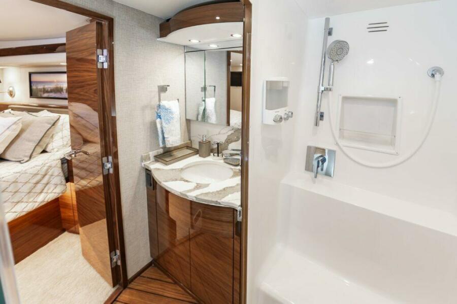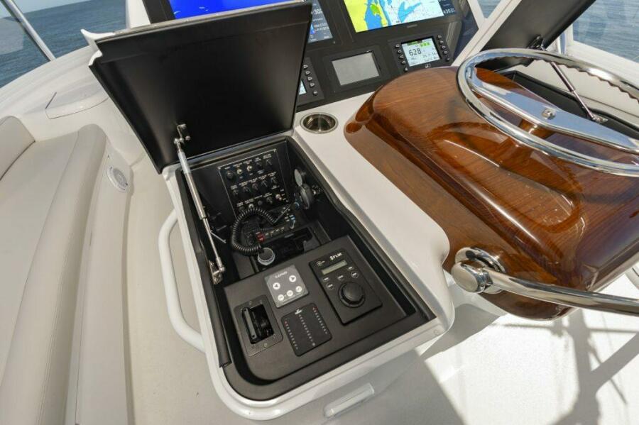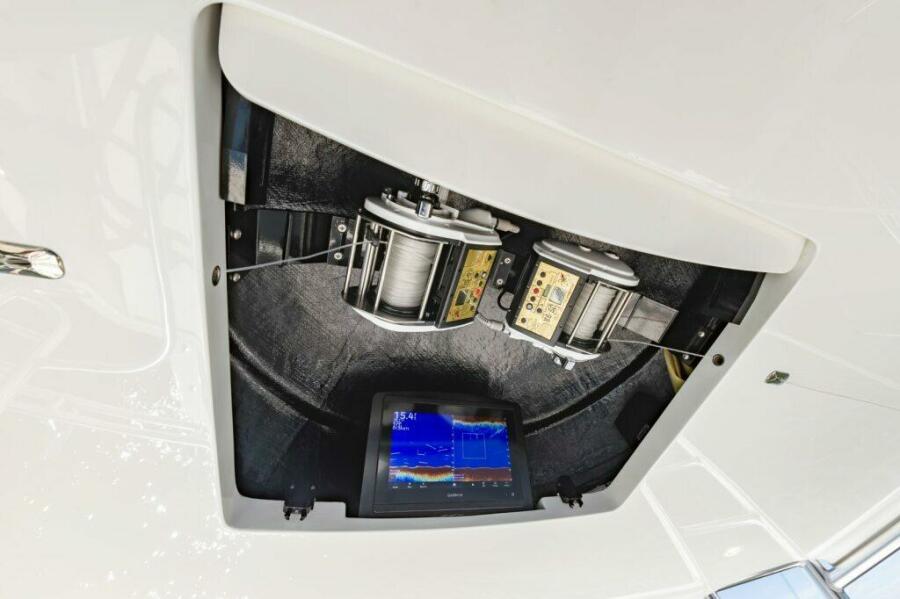 The "Simple Man" is a 2025 58 Convertible with three staterooms and two heads. Notable features include a tricked out Palm Beach Tower, a Complete Electronics package from AME including the Furuno CSH-10: 360 Degree Sonar, and desirable quiet and powerful 10cyl MTU power plant. Listed below below are some of the options which set this boat apart and make it the nicest 58 on the market. This boat has a very soft dry ride and cruises 32kts with a Top Speed of 41.