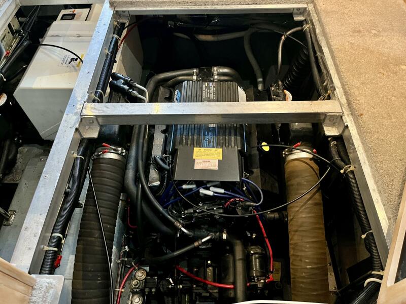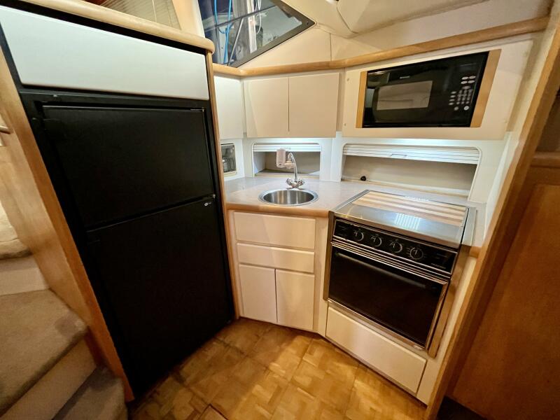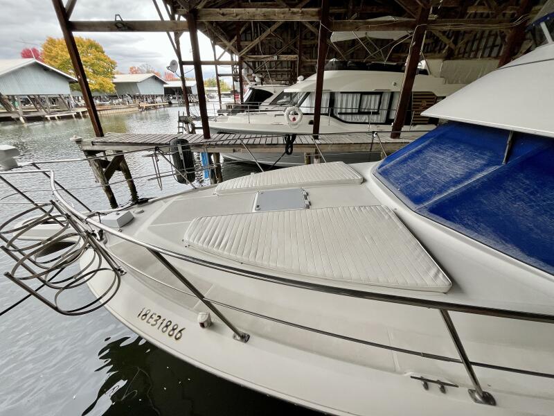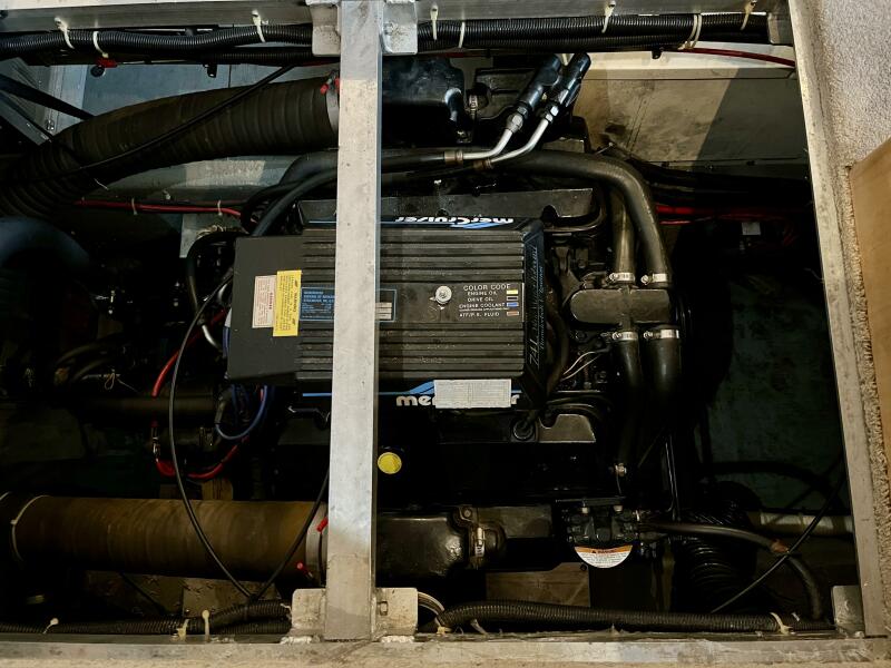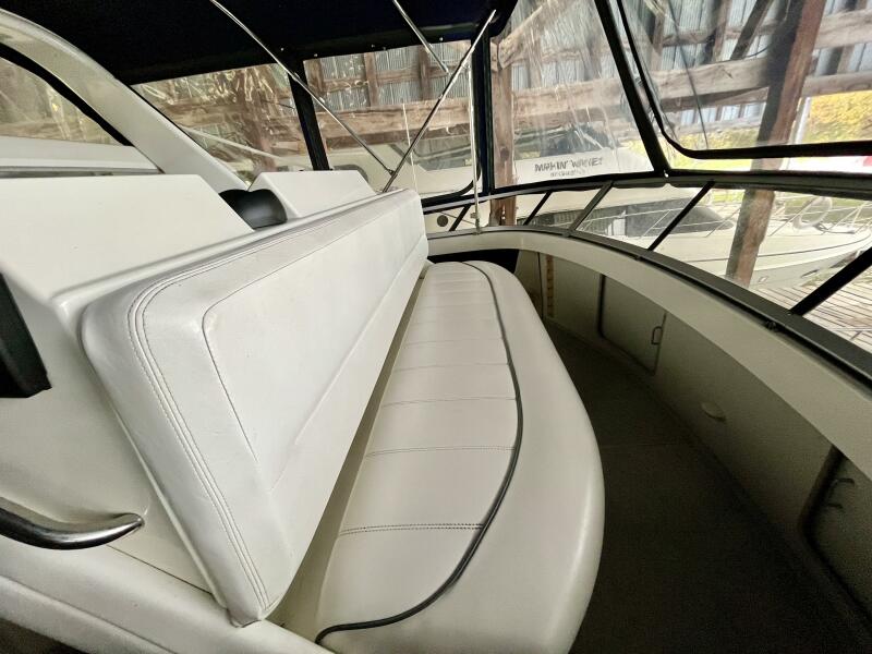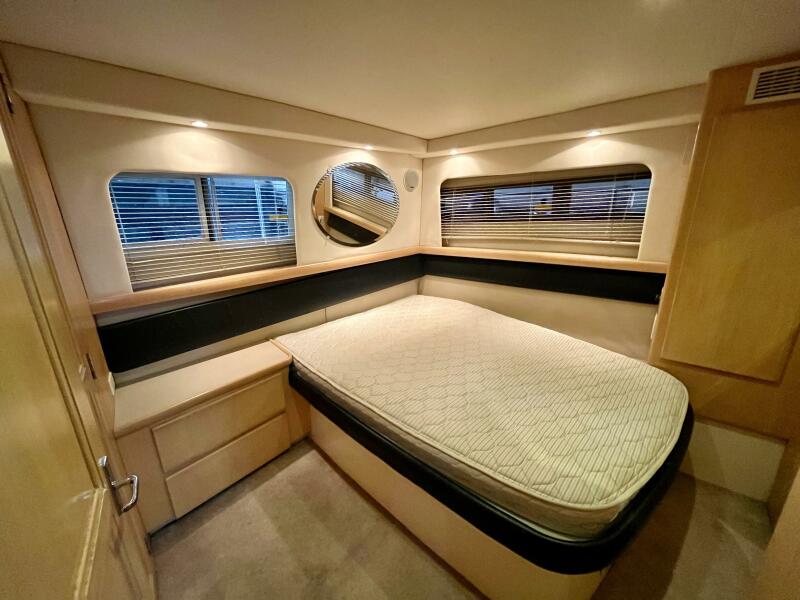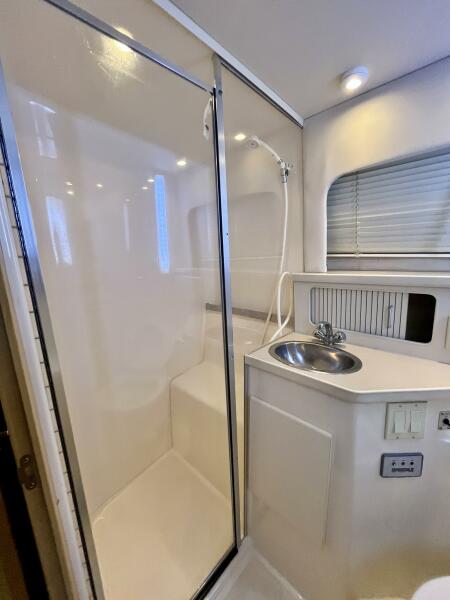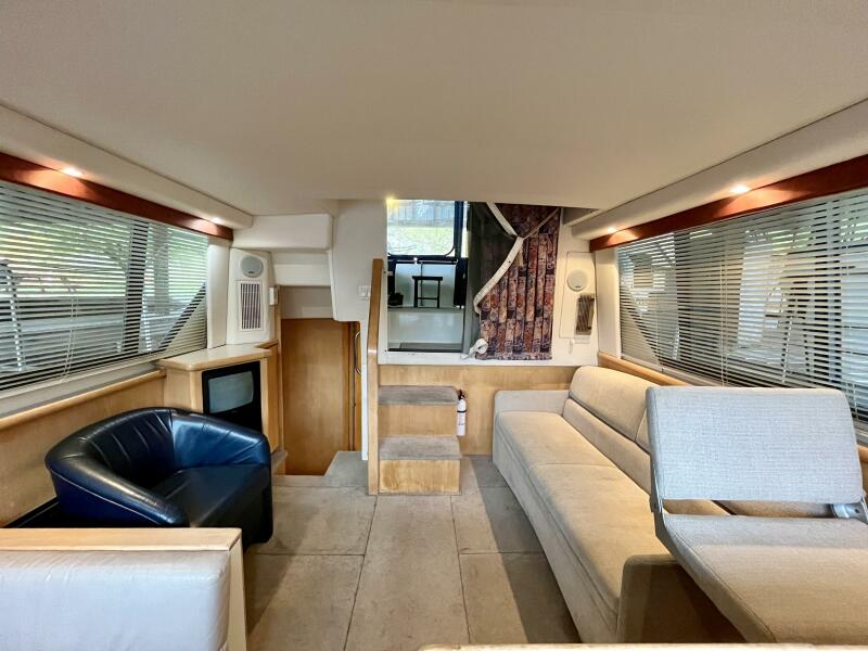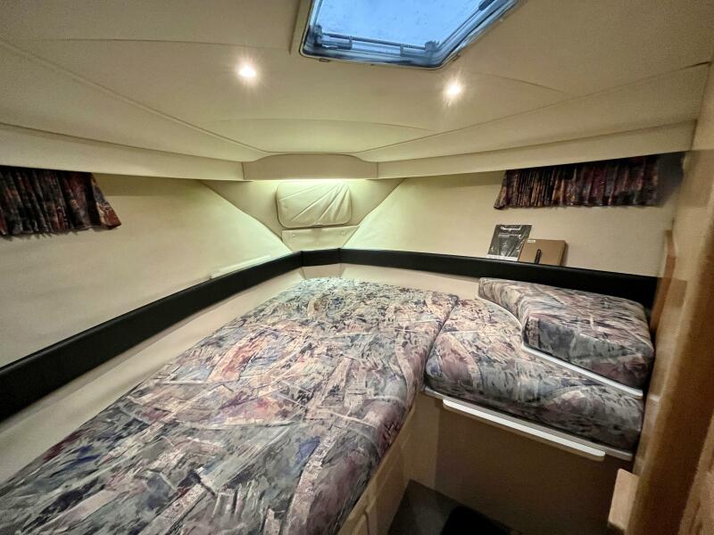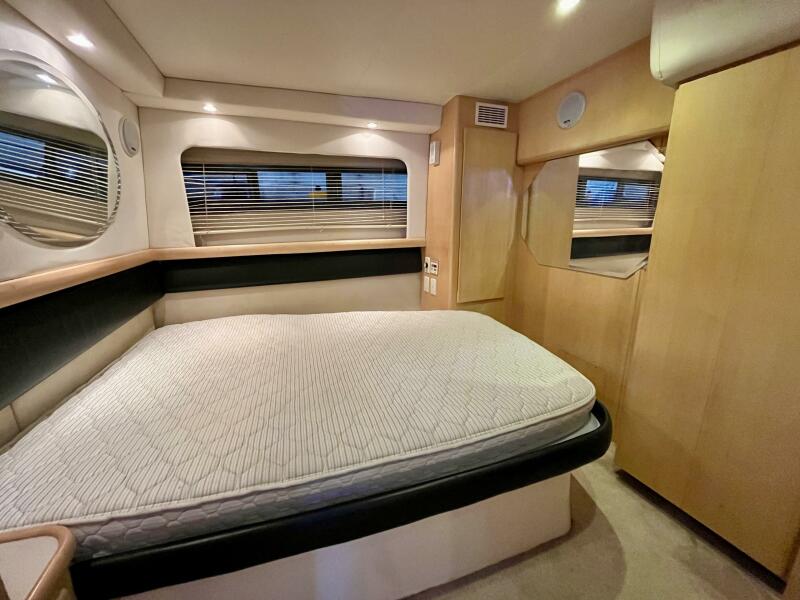 Powered by twin MERCRUISER 7.4L inboard engines, each delivering an impressive 300 horsepower, it promises exhilarating performance and reliability. The yacht is equipped with an electric windlass, enhancing convenience during anchoring. The spacious interior includes a well-appointed head, providing comfort for guests. The design of the aft cabin offers a serene retreat, making it an ideal choice for weekend getaways or extended voyages.