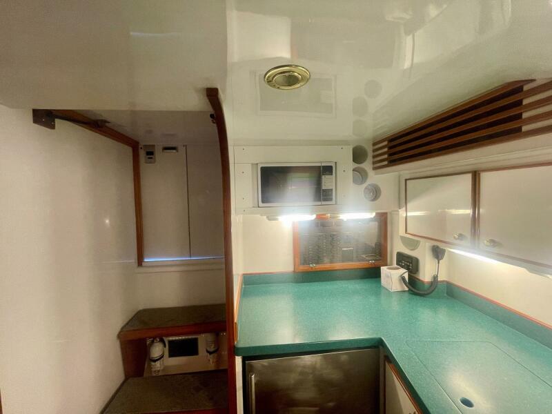 Large spacious cockpit, air conditioned helm deck, and a layout that sleep four. Overnight journeys can be done in comfort.
