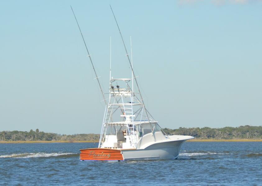 Introducing the stunning 2006 Custom Carolina Express, a remarkable sports fishing boat that combines performance and elegance. With an overall length of 45 feet, this vessel boasts a modified Vee hull made from durable composite material, ensuring a smooth and stable ride. Powered by twin Cummins QSM 11 inboard engines, each delivering an impressive 660 horsepower, the Express achieves a cruising speed of 29 knots and a maximum hull speed of 34 knots, making it an exhilarating choice for fishing enthusiasts. With only 2,200 and 3,800 hours on the engines, this boat is ready for many more adventures. The accommodation features one cabin and one head, providing comfort for overnight trips. The boat is equipped with essential features, including a windlass, enhancing your fishing experience. Experience the thrill of the sea with the Custom Carolina Express, a perfect blend of power and luxury.