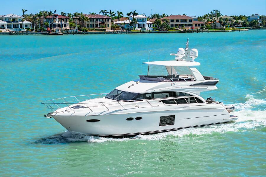 Fuelish Pleasure II is an excellent example of the Princess 56 Flybridge combining stellar performance and seakeeping with refined elegance one would expect from her English pedigree. She comes very well equipped and highly optioned with Seakeeper, Xenta Joystick integrated with bow and stern thrusters, upgraded MAN 800 HP engines, and much more. Please see full description for additional features and options.