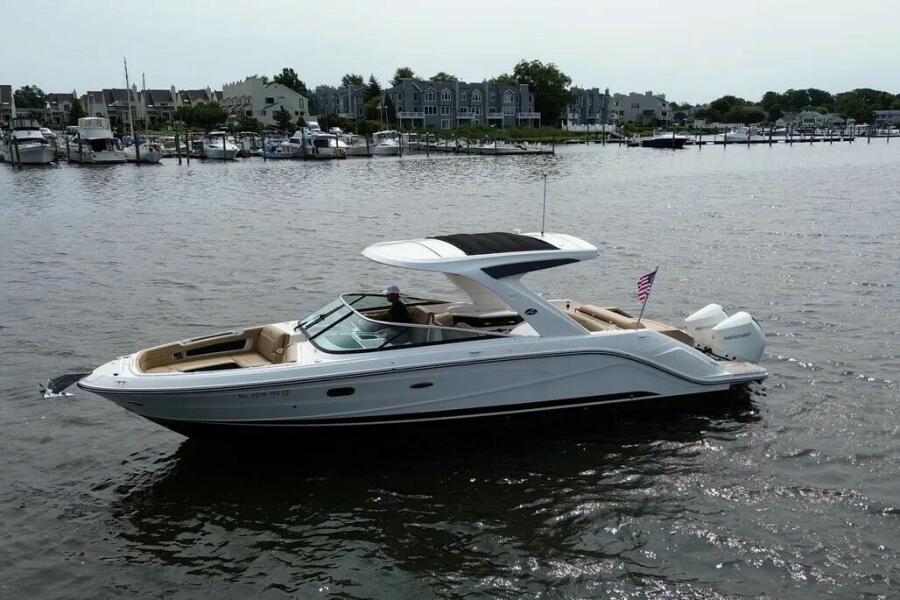 Sea Ray's SLX (Sport Luxury) designation denotes that this is the Top-of-the-Line version of the brand. Super sporty style with an aggressive heavy hull powers the SLX through the chop and keeps everyone comfortable and dry.