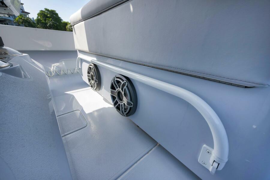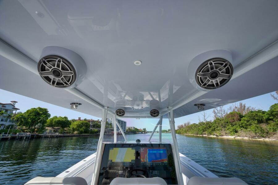 Among the 44ST’s innovative features are the port and starboard forward seats recessed under the gunnel caps to keep the forward deck space open for fishing. A large lounge seat with three large storage compartments is forward of the center console, providing a comfortable relaxation and sunning area. The console interior features a freshwater head and sink and electrical panels. Large in-deck storage compartments stow gear to the Bahamas or Atlantic Canyons for longer runs.