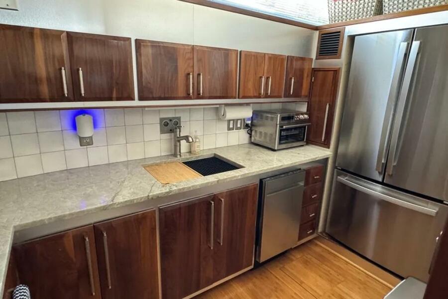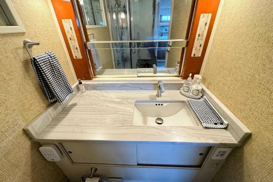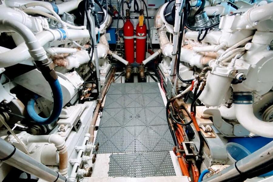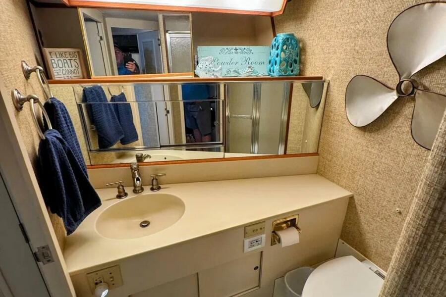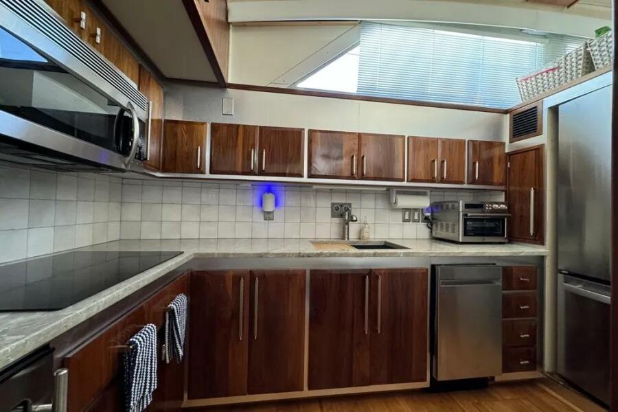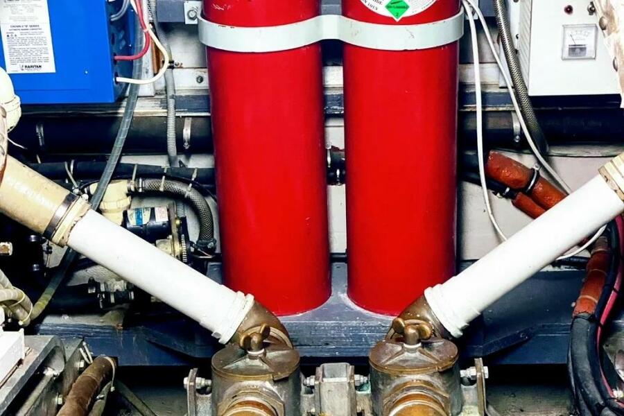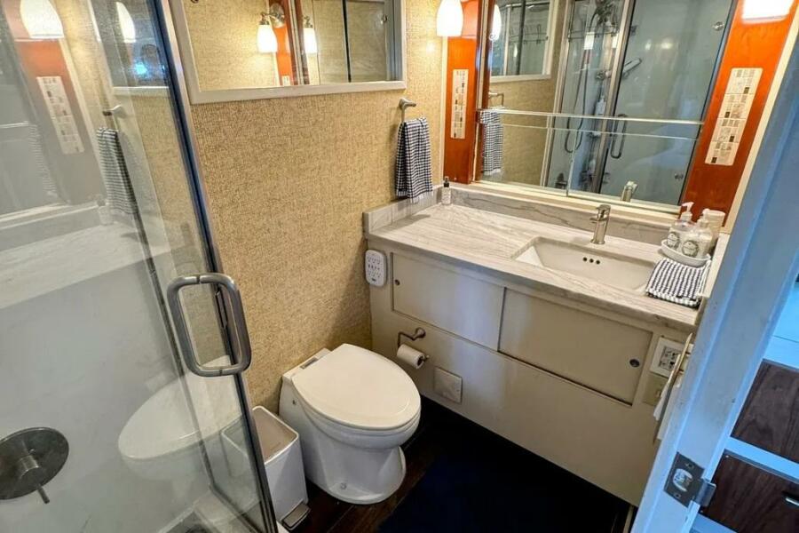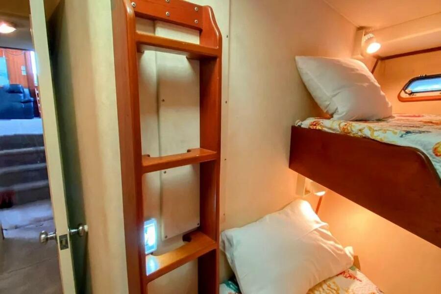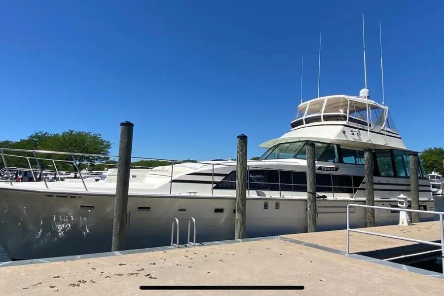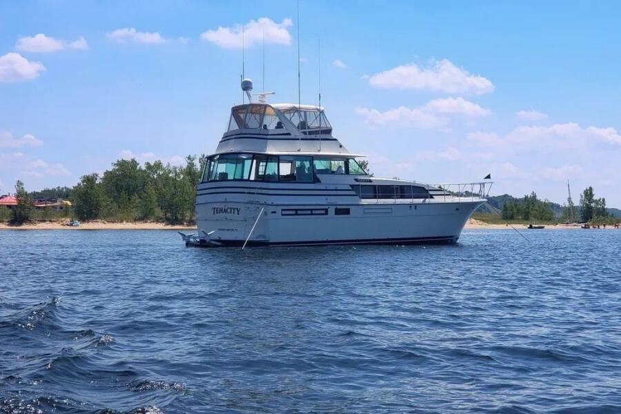 She was ordered new by a West Michigan man who had his great friend fly monthly to the factory to oversee the build with all the custom upgrades that the owner has ordered. The list of custom factory options are extensive. Just to name a few were hydraulic bow thruster and also a crash pump system with a emergency valve if you had a hull breach she would be able to be saved like no other vessel back then. She has been serviced and cared for by the same Mechanic known on the Great Lakes as Detroit Kat since day one. The hull sides shine like the day that she left the factory and her chrome and stainless shows as new as well. I could go on and on but you will have to see her for your self. Call today to step aboard this incredible Yacht.