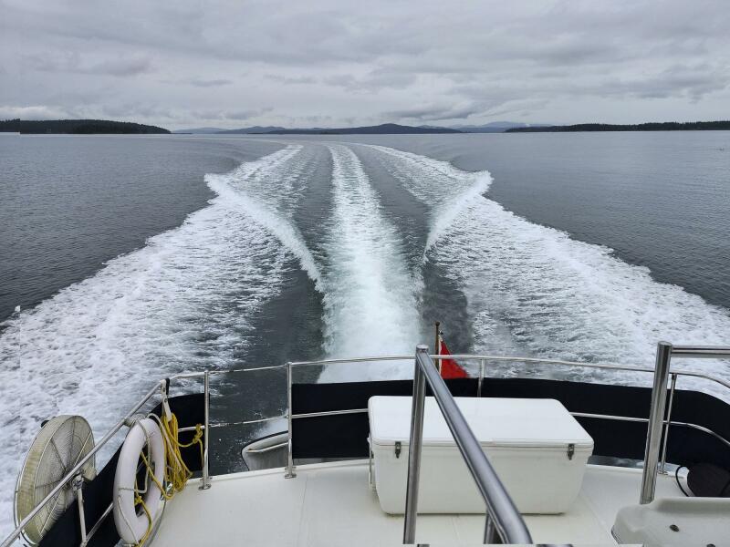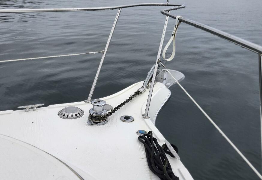 Stepping into the main salon, you will notice right away how well she has been cared for. Beautiful teak interior that is in great condition. Carpeted sole and the space is bright and open. Surrounding you are the very large windows giving you great views while relaxing. The lower helm is right there as well. Step down to a full-size galley. A lot of storage with the cabinet arrangement, making it feel like you are cooking at home. Open the portlights or the windows to keep it nice and fresh inside. The upper/lower helm design allow options for the captain. Choices to lounge back and relax outside or in. Go outside, set up your patio and enjoy a glass of wine. A few more step up and you are in control of the vessel. The flybridge is set up with x3 newly upholstered buck seats and a bench seat. A complete helm station and an overhead bimini. Whether gathering with friends or prepping a delectable meal, this vessel’s layout is fantastic.