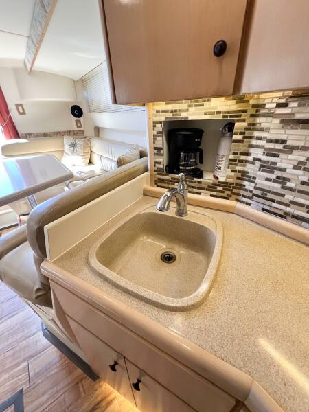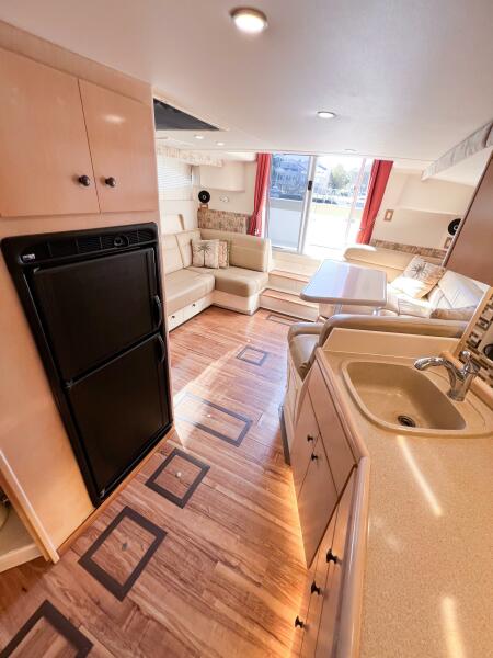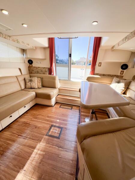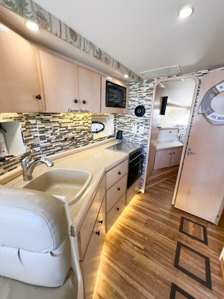 Boating magazine once called the Carver 350 Mariner “a floating waterfront condo with an open floor plan that feels 10 feet longer than it is.” Her interior space rivals many 40-footers — with a wide-beam salon, full galley, generous headroom, and sleeping for six.