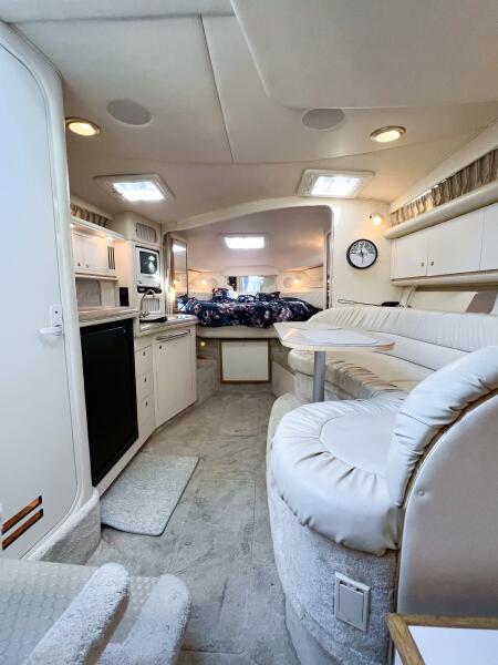 Step aboard KNOT AT WORK — a beautifully kept 2000 Sea Ray 340 Sundancer that blends sport performance with the comfort of a floating condo. This model became an icon for Sea Ray’s “Express Cruiser” series — praised by Boating Magazine and Power & Motoryacht for her sleek lines, superb layout, and family-friendly cockpit design.