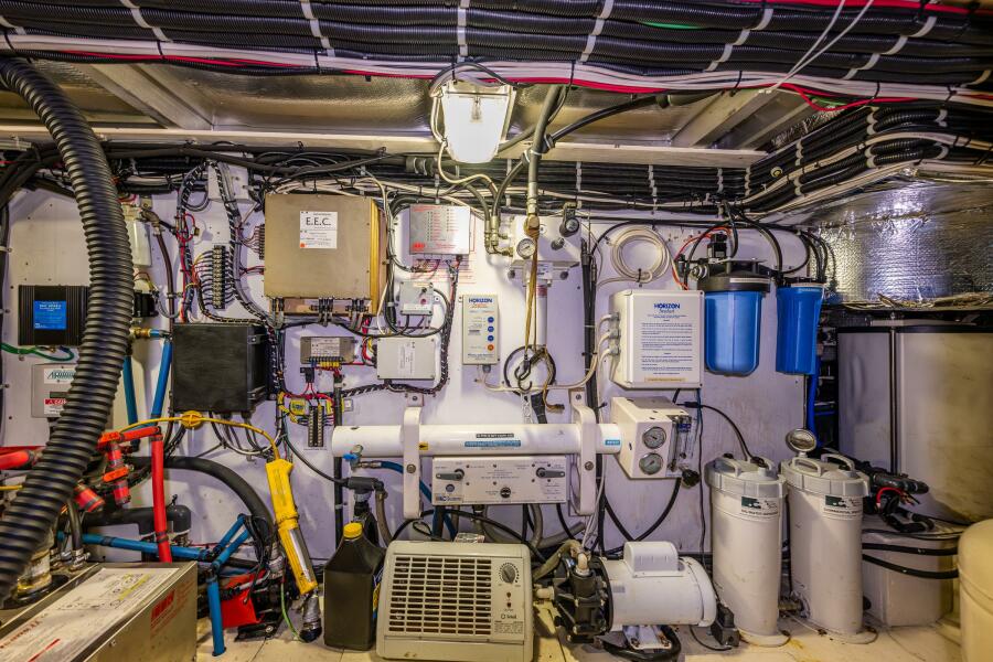Hydraulic windlass, spotlight, and easy access to flybridge via molded staircase