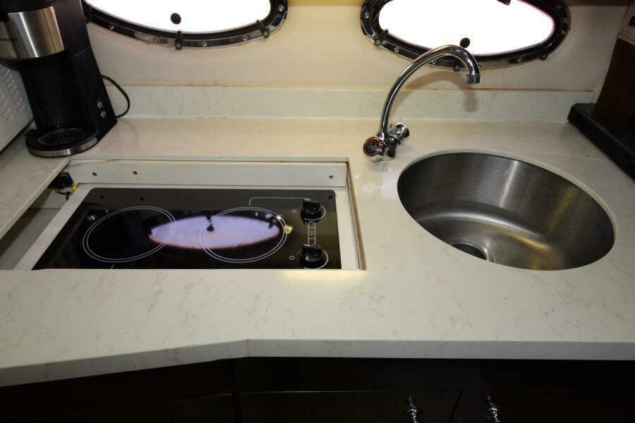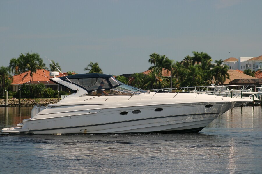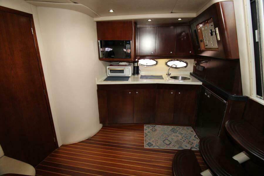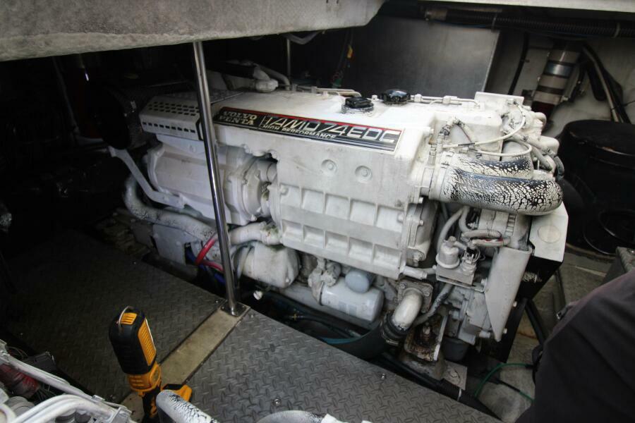 With 2-staterooms, 2-heads and a spacious salon and galley LONG OVERDUE is powered by twin Volvo inboard engines, each delivering an impressive 480 horsepower, the Commodore 4260 achieves a cruising speed of 28 mph and a maximum hull speed of 36 mph, making it ideal for thrilling adventures. The electric windlass adds convenience, enhancing your experience while docking or anchoring. Accommodations include two spacious cabins and two heads, providing comfort for family and friends. This boat is perfect for those seeking both relaxation and excitement on the water. The Regal Commodore 4260 is truly a remarkable choice for anyone looking to enjoy unforgettable moments at sea.