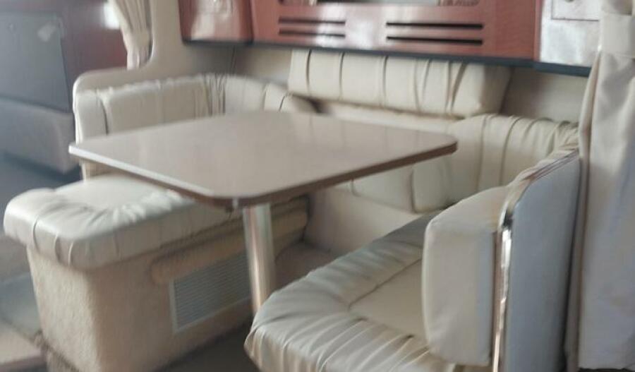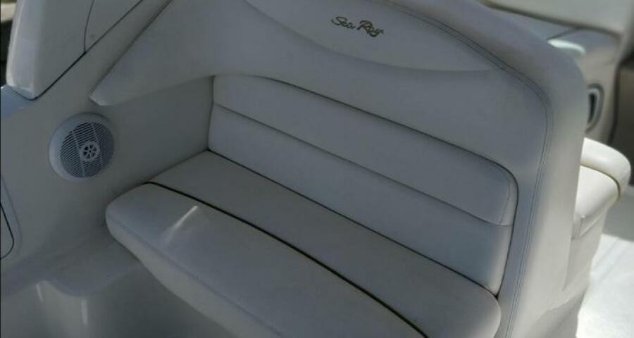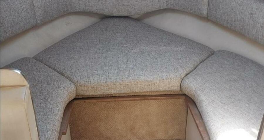 Descent head room, a full galley, and a V berth that converts into a second dinette. Built on a deep V hull with a moderate beam and an integrated swim platform, the Sundancer's curved radar arch is an appealing design touch that's showing up on a good many express boats these days. The single level cockpit is arranged with a sun pad opposite the helm, and aft facing bench seat, wet bar, and a retractable rear bench seat that folds up into the transom when it's necessary to get into the engine compartment. A large storage locker is built into transom, and molded steps at the helm provide easy access to the Walk through windshield. Powered with the 260hp MerCruiser sterndrives, the 280 will cruise in the mid to high 20s and reach a top speed in the neighborhood of 40 knots.