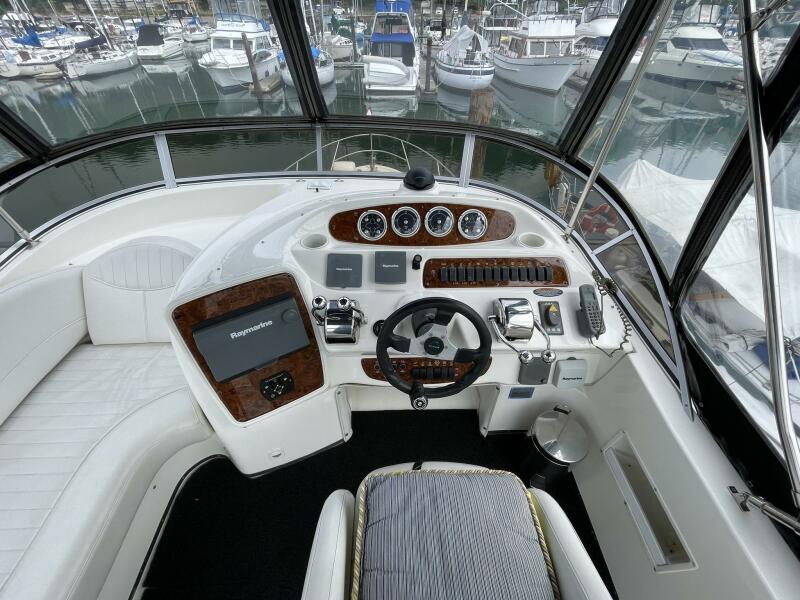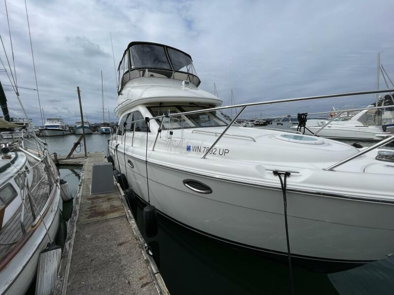 Well-equipped Meridian 341 with twin Cummins diesels, bow & stern thrusters, full electronics, and spacious two-stateroom layout. Highlights include inverter, solar, tender, and updated batteries—ideal compact cruiser with great value and handling ease.